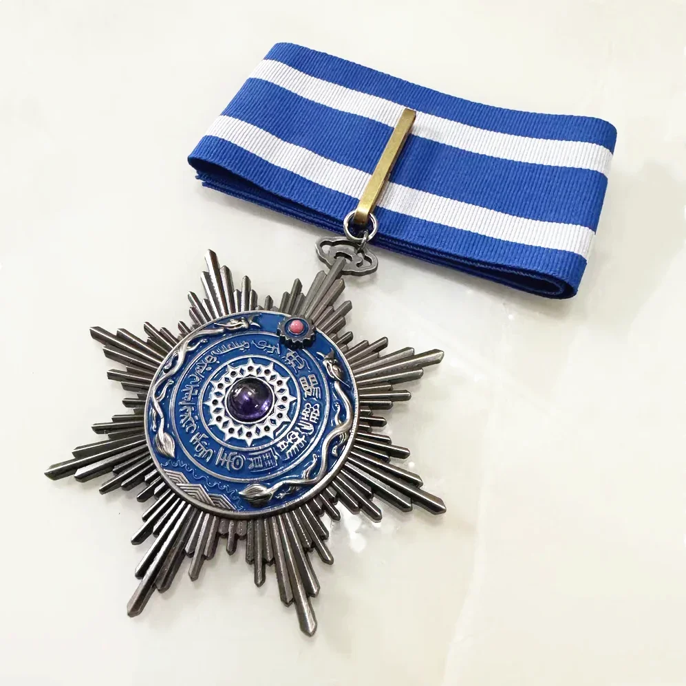 Immerse yourself in the majestic beauty of this handcrafted Double Dragon Copper Shield Medal. Crafted from pure cast copper, it boasts a thick, durable feel with intricate detailing that highlights traditional Chinese folk art. The medal features a star-shaped design with radiating spikes, creating a commanding sunburst effect that captures attention. At its center, a vibrant, glossy blue enamel circle is accented by a prominent purple gemstone or decorative element, adding a regal touch. The surrounding intertwining dragons and serpent motifs emphasize heritage and symbolism, making this piece perfect for patriotic displays or DIY projects. Its realistic craftsmanship and detailed design make it a true collector’s item, evoking history, craftsmanship, and cultural pride with every glance.