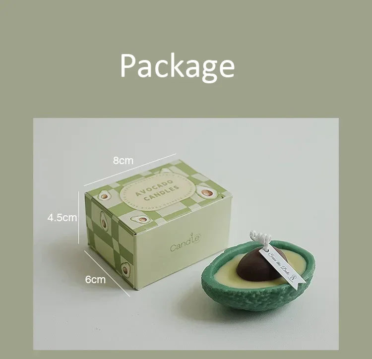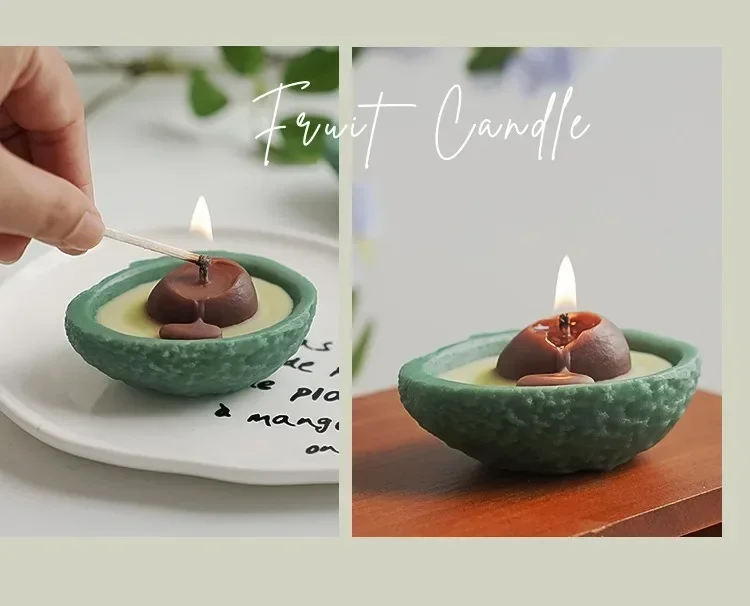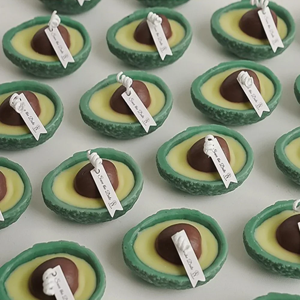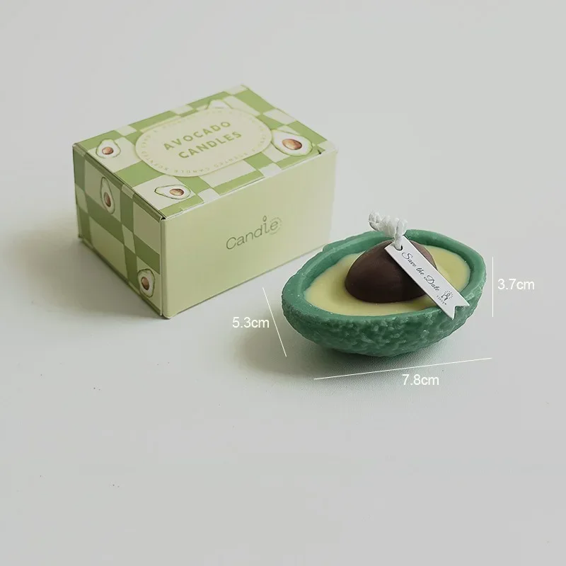 - Measures approximately 8mm wick length, with a vivid avocado green color and a realistic seed detail.