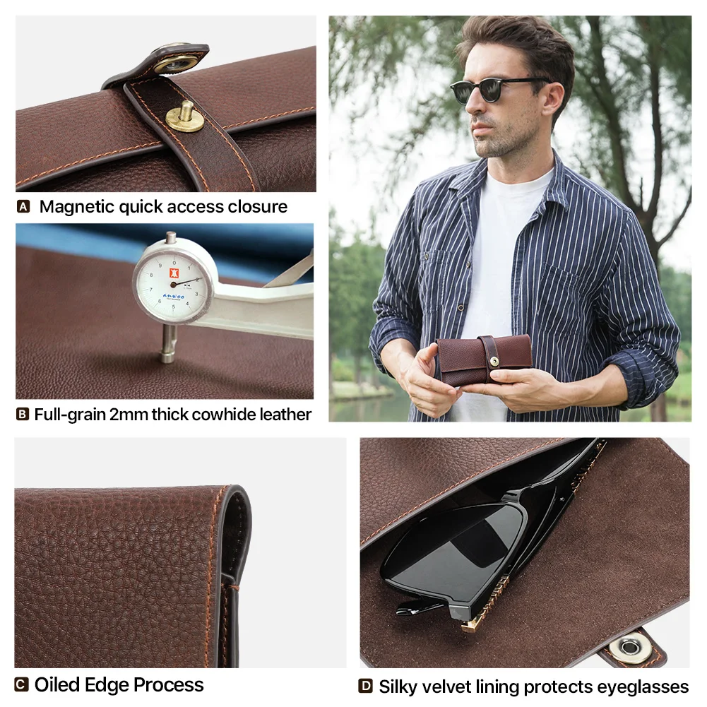 Imagine yourself confidently carrying this vintage-inspired leather case, protecting your eyewear in style during your travels or daily routine. Its craftsmanship and elegant design make it an unmistakable accessory, elevating your look and ensuring your glasses are always well-protected. Whether you’re heading to work, out for casual strolls, or on an adventure, this case offers both practicality and timeless allure. Invest in a piece that blends sophisticated design with everyday durability, and enjoy the peace of mind knowing your glasses are secure and stylishly housed wherever life takes you.