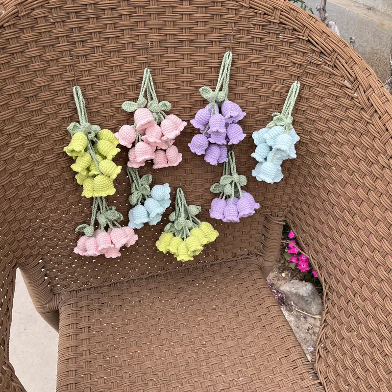 Imagine adding a touch of charm to your everyday accessories with these delicate handmade crochet flower keychains. Each charm features a charming bunch of bell-shaped flowers crafted from soft yarn in pastel shades like pale yellow, light pink, purple, and pure white. The tiny flowers are uniformly shaped, with a plush, textured surface that highlights their handcrafted quality. Suspended from neutral-colored crochet loops and equipped with durable metal O-shaped buckles, these keychains are perfect for decorating bags, keys, or even as thoughtful gifts. Their cute, cozy style makes them ideal for lovers of handmade accessories who enjoy subtle elegance and a bit of whimsy. Enhance your personal collection or give a loved one a meaningful, handcrafted surprise.