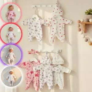 Create a charming collection of four handmade baby romper outfits, each designed for 8-9 inch dolls, featuring a variety of stylish and adorable designs. Crafted from high-quality, soft-touch cloth materials with precise sewing, these unisex outfits offer a realistic and attractive appearance, perfect for enhancing your doll collection. The set includes two outfits in each of four color combinations—Pink, White Gray, White Purple, and White Red—matching the detailed patterns of floral, butterfly, hearts, and the word “LOVE.” Easy to dress and suitable for dolls aged 14 years and above, these outfits are ideal for collectors seeking cute, high-quality fashion accessories.