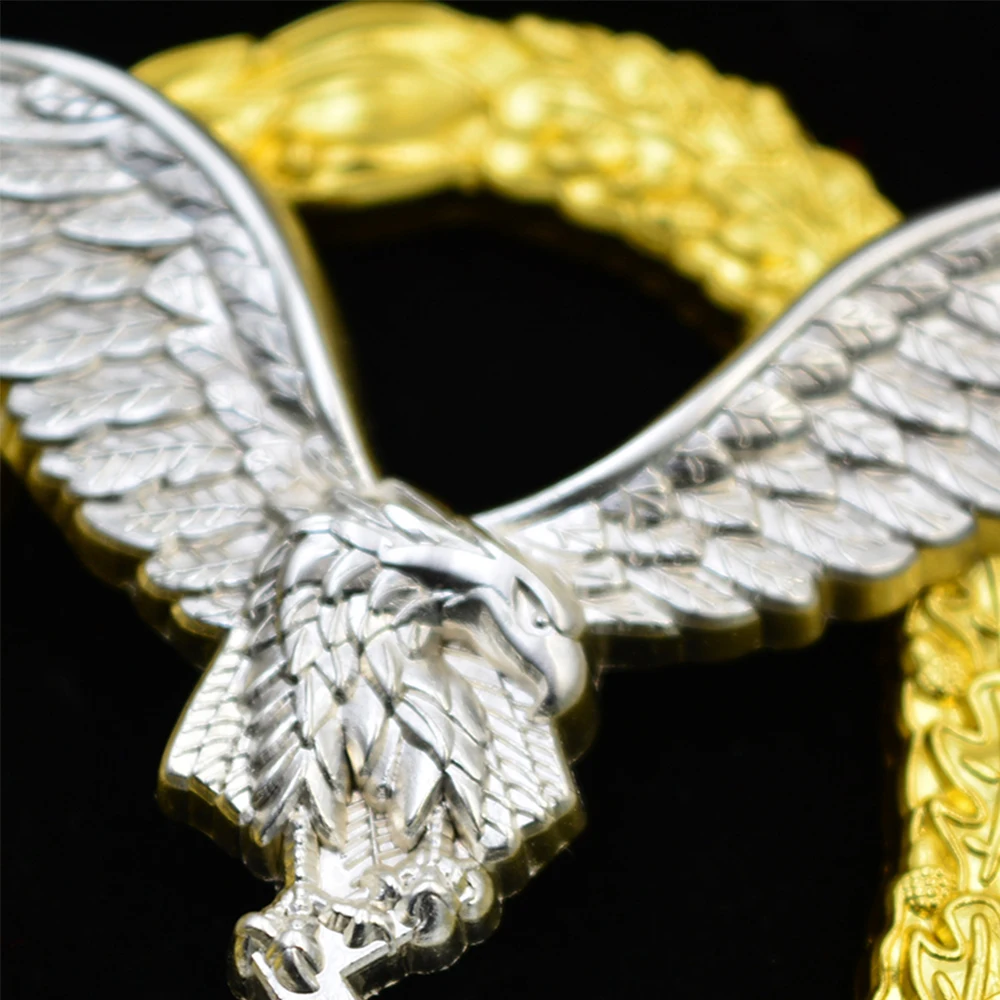 Imagine owning a stunning replica of the prestigious Air Force Hans Pilots Badge. Crafted with intricate detail, this vintage-inspired brooch captures the eagle with outstretched wings, showcasing fine feather engravings that evoke a sense of authority and admiration. The dual-tone design, featuring a silver eagle framed by a textured gold circular border, creates a striking contrast that highlights craftsmanship and elegance. Measuring approximately 6.5cm by 5.3cm and lightweight at about 0.027 kg, this metal badge exudes quality and timeless style. Whether displayed as a collector’s item or worn as a statement piece, it’s perfect for aviation enthusiasts, history lovers, or anyone who appreciates refined design and exceptional detail in a souvenir or gift.