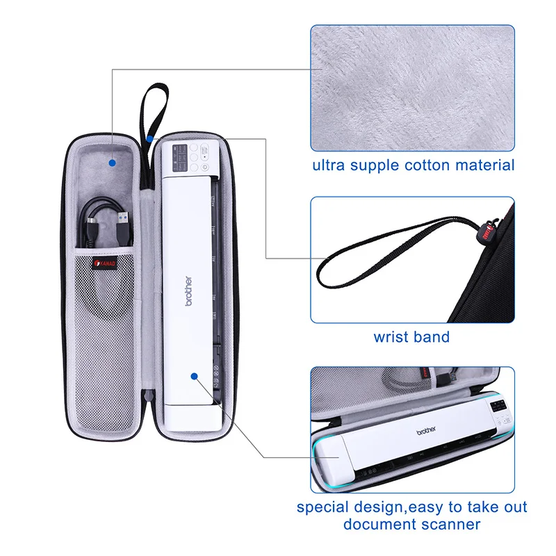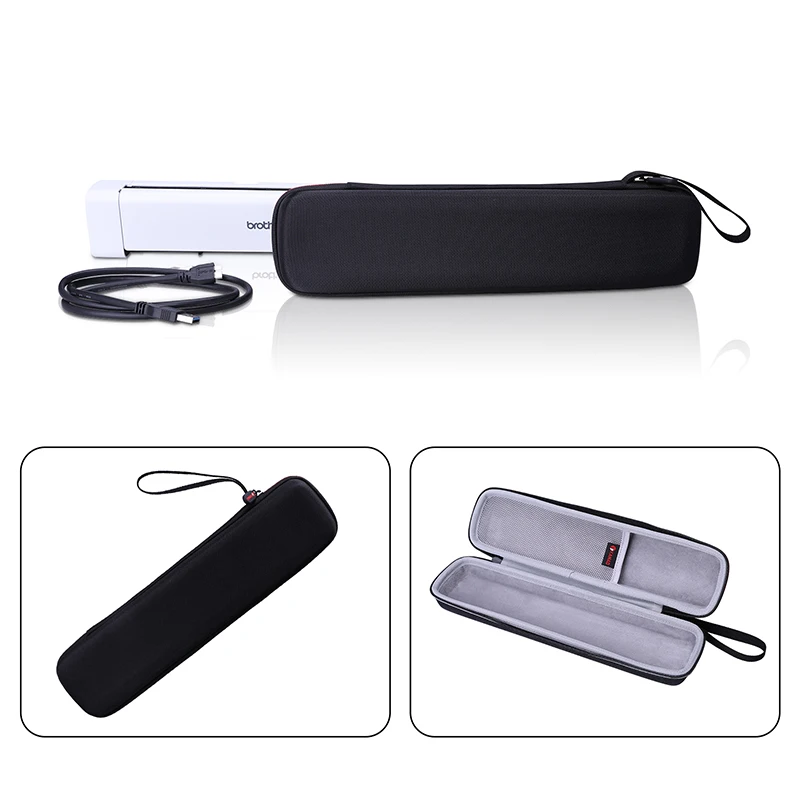 Protect your Brother DS-940DW, DS-740D, or DS-640 Document Scanner with this durable hard case designed for optimal fit and functionality. Made from high-quality EVA material, it provides semi-waterproof and shockproof protection against impacts and splashes, ensuring your scanner remains safe during transport. Features include a steady non-detachable hand strap for easy carrying, an inner mesh pocket for storing accessories, and a reliable 360-degree zipper for effortless access. This lightweight and portable hard case is the perfect companion for your office needs. (Note: Case only, scanner not included.)