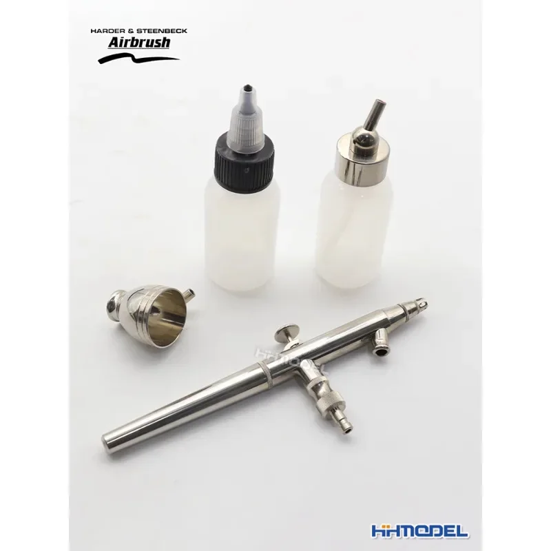 Experience the art of fine detail with this high-quality airbrush from Harder Steenbeck’s Hansa Hobbyline series. Crafted with a sleek, polished silver-colored metal body, this tool combines industrial elegance with durability. The finely machined 0.3mm nozzle allows for precise spraying, perfect for detailed models, illustration, or hobby projects. Its ergonomic design features a knurled adjustment ring for effortless control over paint flow and air pressure. The 5ml capacity ensures a steady work session without frequent refills, while the two included 30ml bottles provide versatile storage and mixing options. The lightweight plastic construction makes handling comfortable and easy for users aged 14 and up. Whether you're upgrading your toolkit or starting a new project, this airbrush offers reliability and precision.