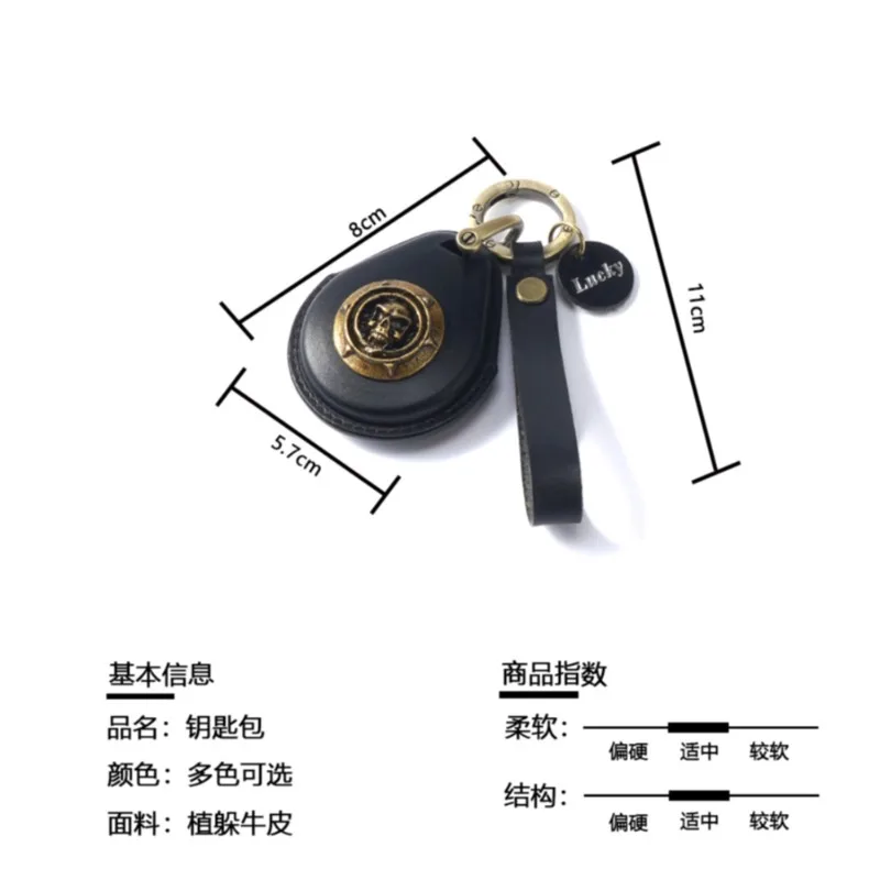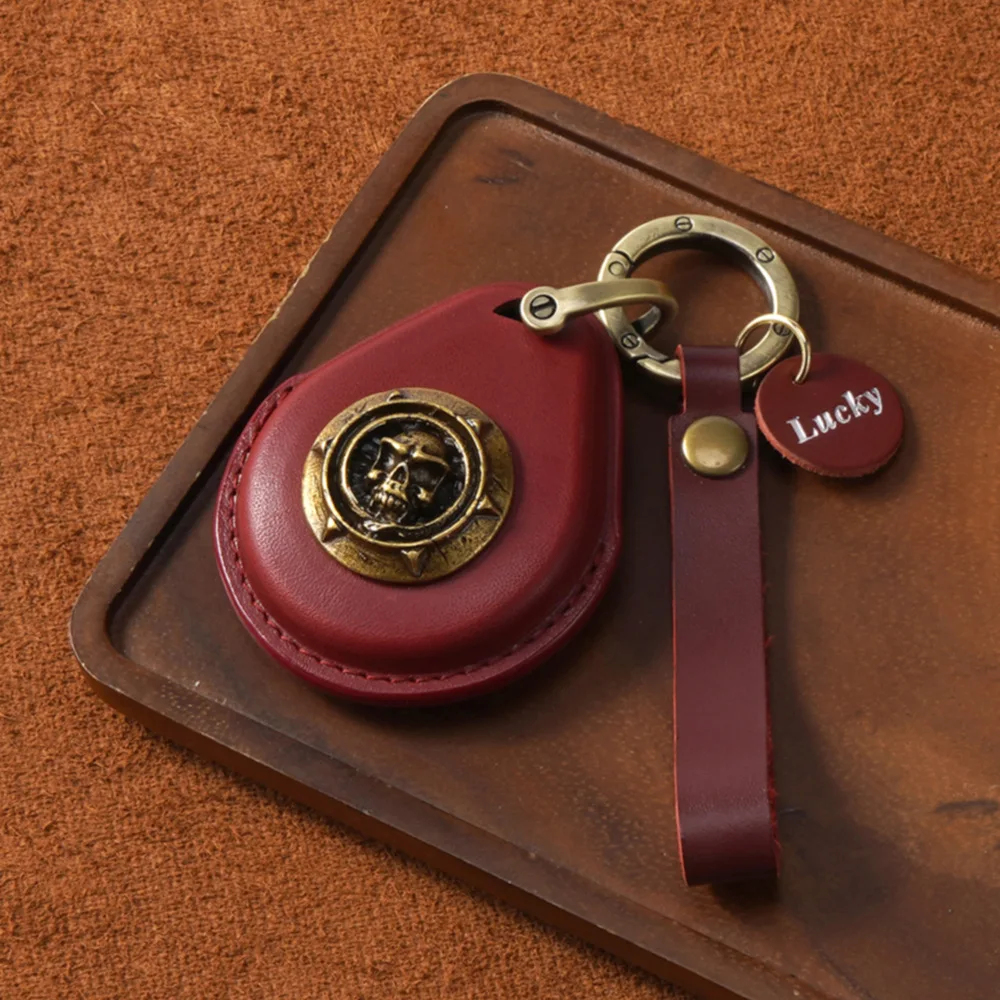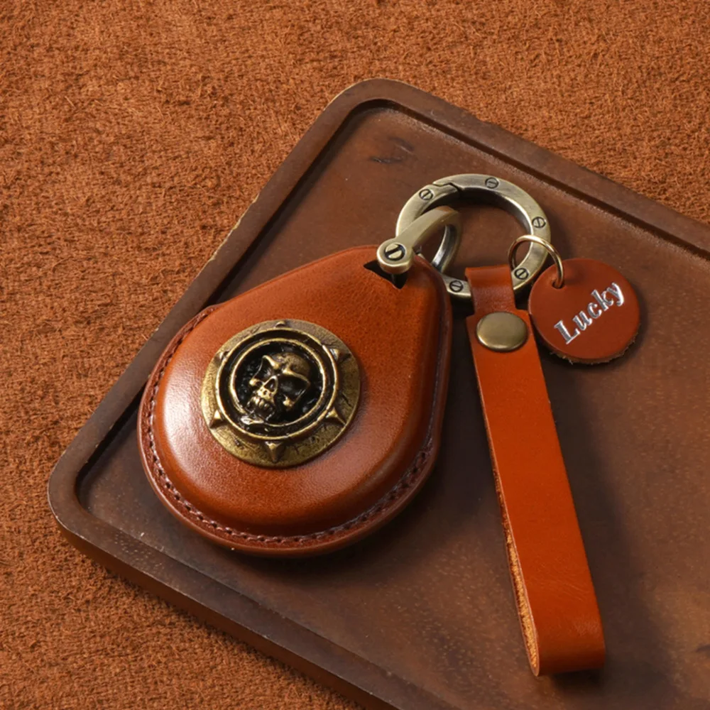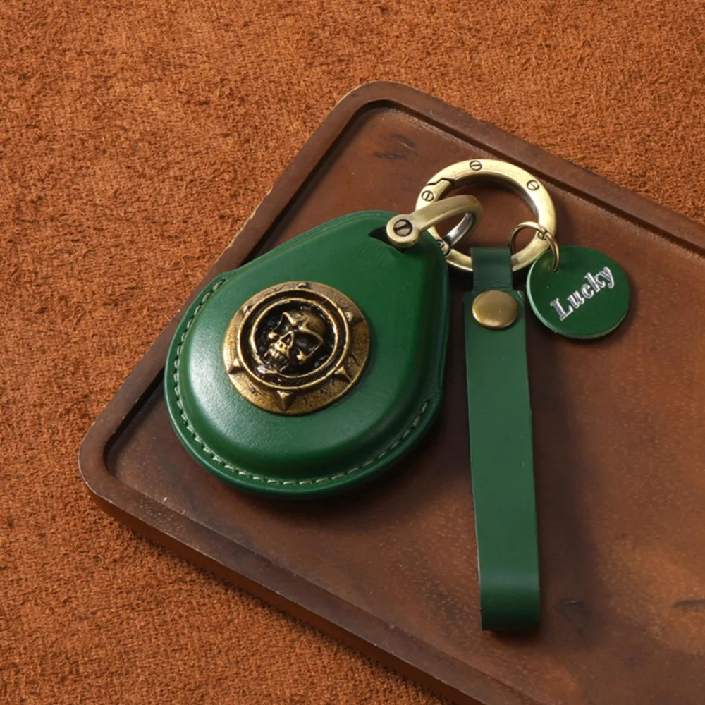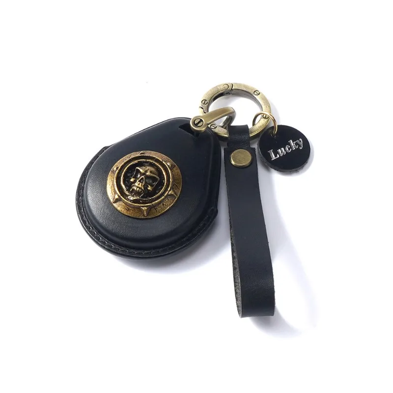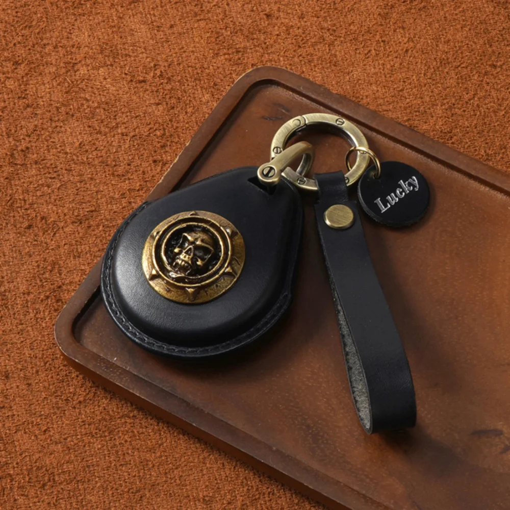 This premium motorcycle key bag is perfect for Harley Davidson enthusiasts, crafted from top layer leather that exhibits a smooth texture and polished finish. Available in a variety of colors like green, brown, dark red, and classic black, this stylish accessory enhances your motorcycle gear. Each key bag features a unique teardrop shape and is adorned with a striking brass emblem showcasing a skull design. The functional elements include a sturdy metal ring to securely hold your keys and a small leather strap for easy attachment to your belt or bags. You're not just purchasing a key bag; you're embracing a rugged lifestyle that celebrates freedom and adventure.