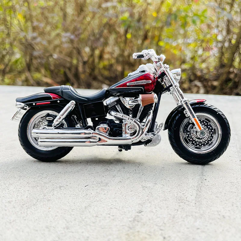 Experience the stunning realism of this 1:18 scale diecast model of the 2009 FXDFSE CVO Fat Bob motorcycle. Crafted with meticulous attention to detail, this collectible showcases a sleek black and chrome finish, accented by deep metallic red on the fuel tank. The realistic design features bold, muscular lines characteristic of Harley’s Fat Bob style, with wide tread tires, chrome front fork, handlebars, exhaust pipes, and engine components. The textured black seat and clear plastic headlight add to its authenticity. Whether displayed on your desk or in your collection, this model embodies rugged, industrial masculinity and expert craftsmanship, making you feel connected to Harley's iconic design every time you gaze upon it.