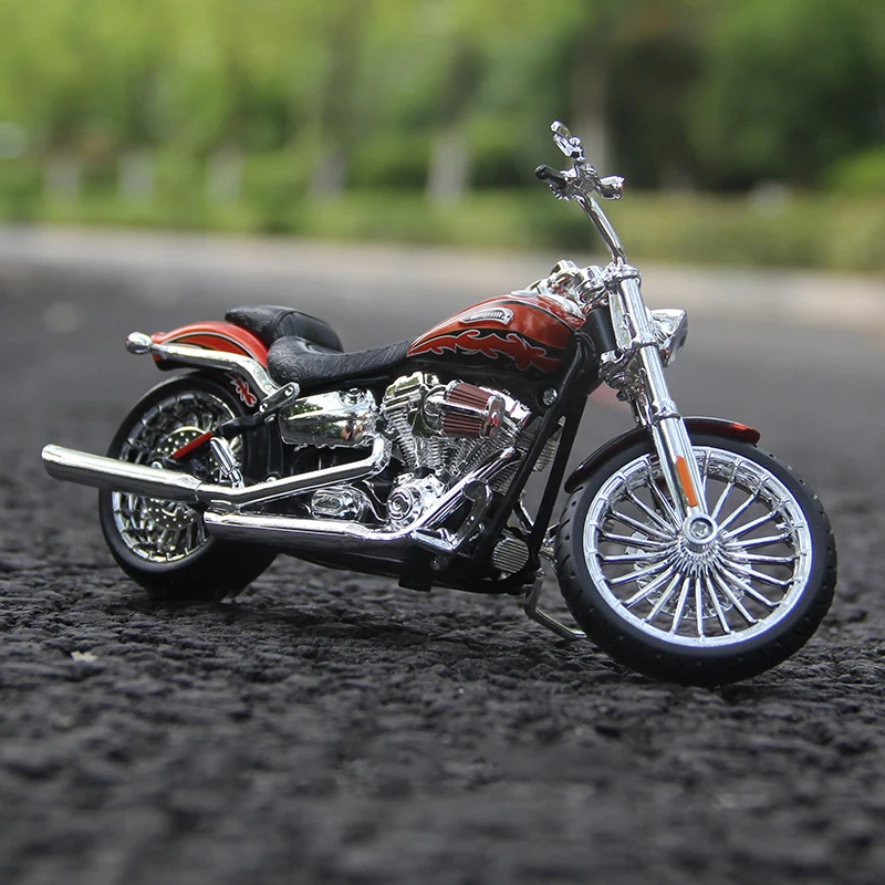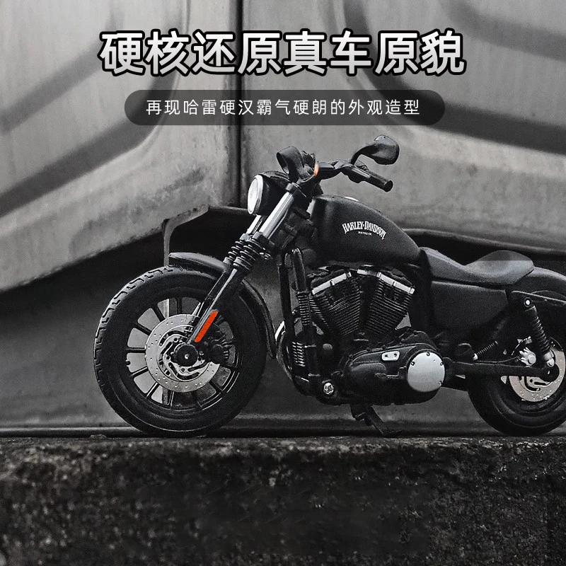 - Features include detailed engine with cooling fins, shock absorbers for off-road aesthetic, and authentic Harley logo on the fuel tank for added realism.