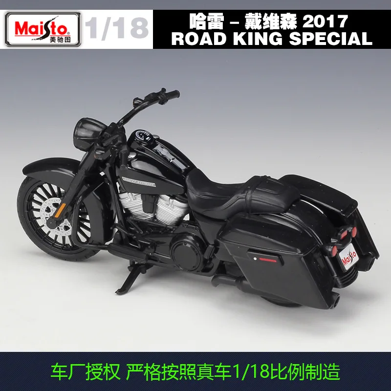 - The 1:18 scale diecast model offers impressive detail, accurate to the iconic 2022 Harley-Davidson Road King Special, highlighting durability with a sturdy metal construction.