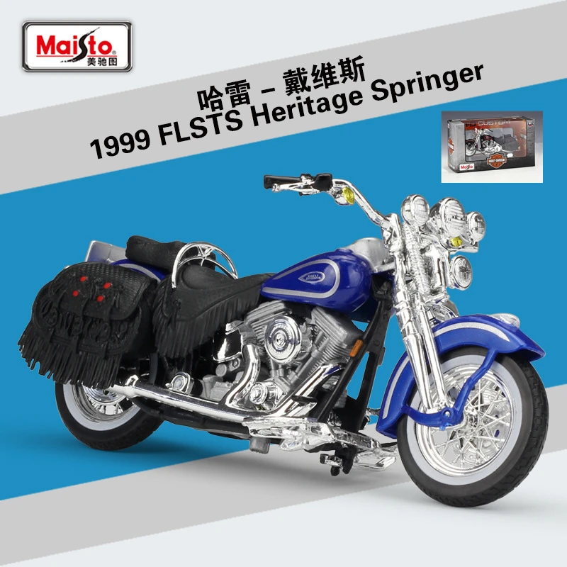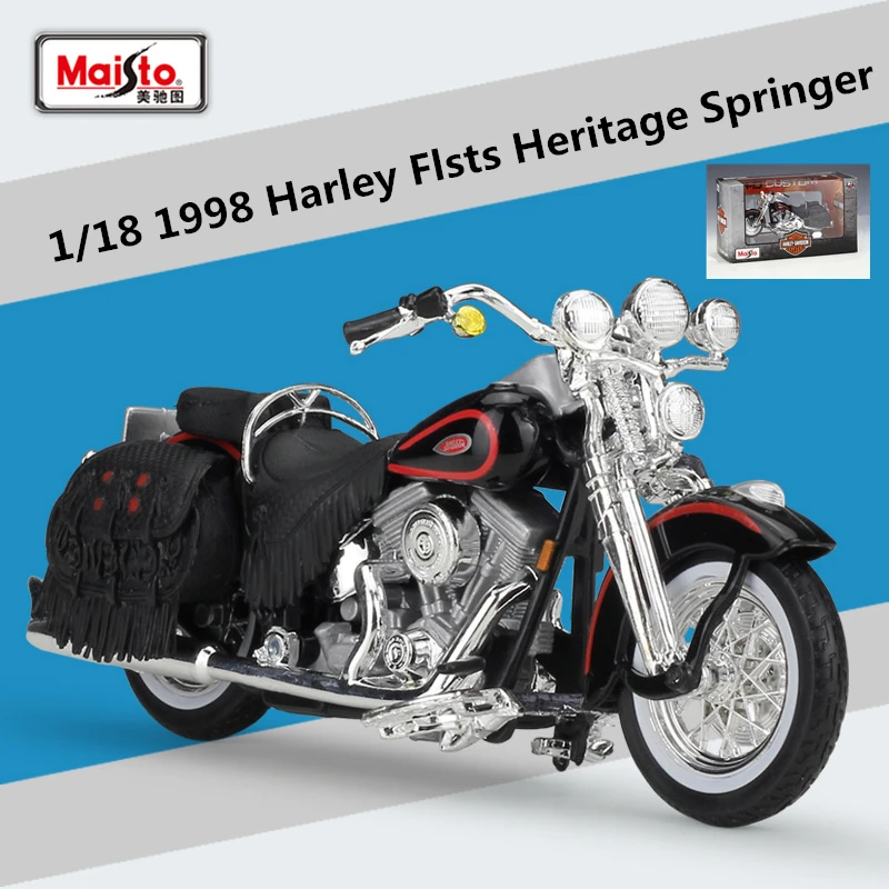 - This 1:18 scale Harley FLSTS Heritage Springer model is made from high-quality alloy and plastic materials, ensuring durability and a realistic appearance for display or collection.
