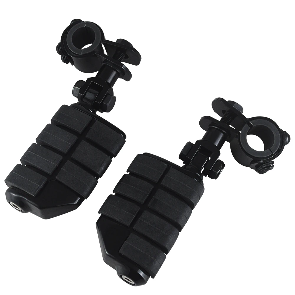 These Motorcycle Highway Clamp Foot Pegs are designed to elevate your riding experience, offering unmatched comfort and style on long journeys. Imagine cruising down the open road, the wind in your hair, and your feet comfortably positioned on sleek, durable footpegs. Constructed from high-quality aluminum and rubber, these pegs provide excellent grip and stability on your 1-1/4 inches highway engine guards. With an easy installation, you'll be ready to hit the road in no time, enhancing both function and aesthetics of your Harley Road King, Electra Glide, or Street Glide. Embrace the freedom of the ride with this essential accessory tailored for enthusiasts like you.