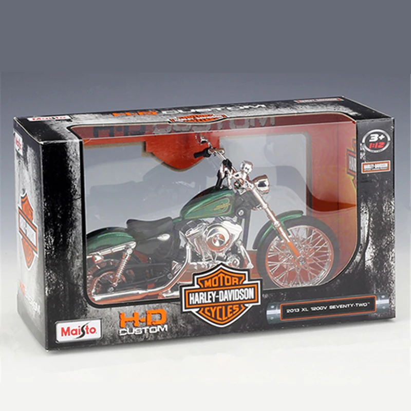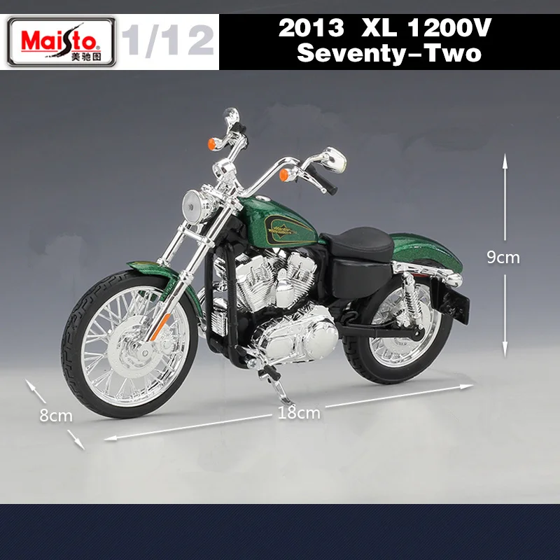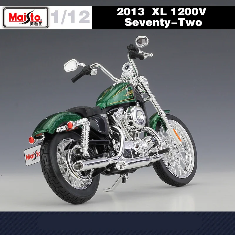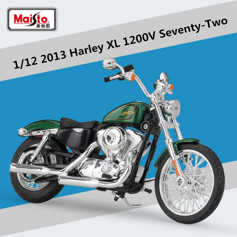 - Model dimensions and design replicate the iconic 2013 Harley XL 1200V Seventy-Two with precision details.