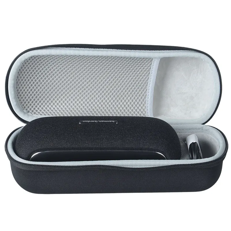 Protect your Harman Kardon Luna wireless Bluetooth speaker with this durable, lightweight hard EVA travel case, measuring 285mm in length, 110mm in width, and 95mm in height, weighing only 310 grams. Designed with waterproof, heavy-duty, anti-knock features and a secure zipper closure, it offers reliable shockproof protection during travel. Available in sleek black and muted grey, the case’s minimalist design combines practical durability with modern style, featuring a soft padded interior and a mesh pocket for organizing small accessories. Perfect for safeguarding your speaker against bumps, moisture, and scratches, ensuring your device stays pristine wherever you go.