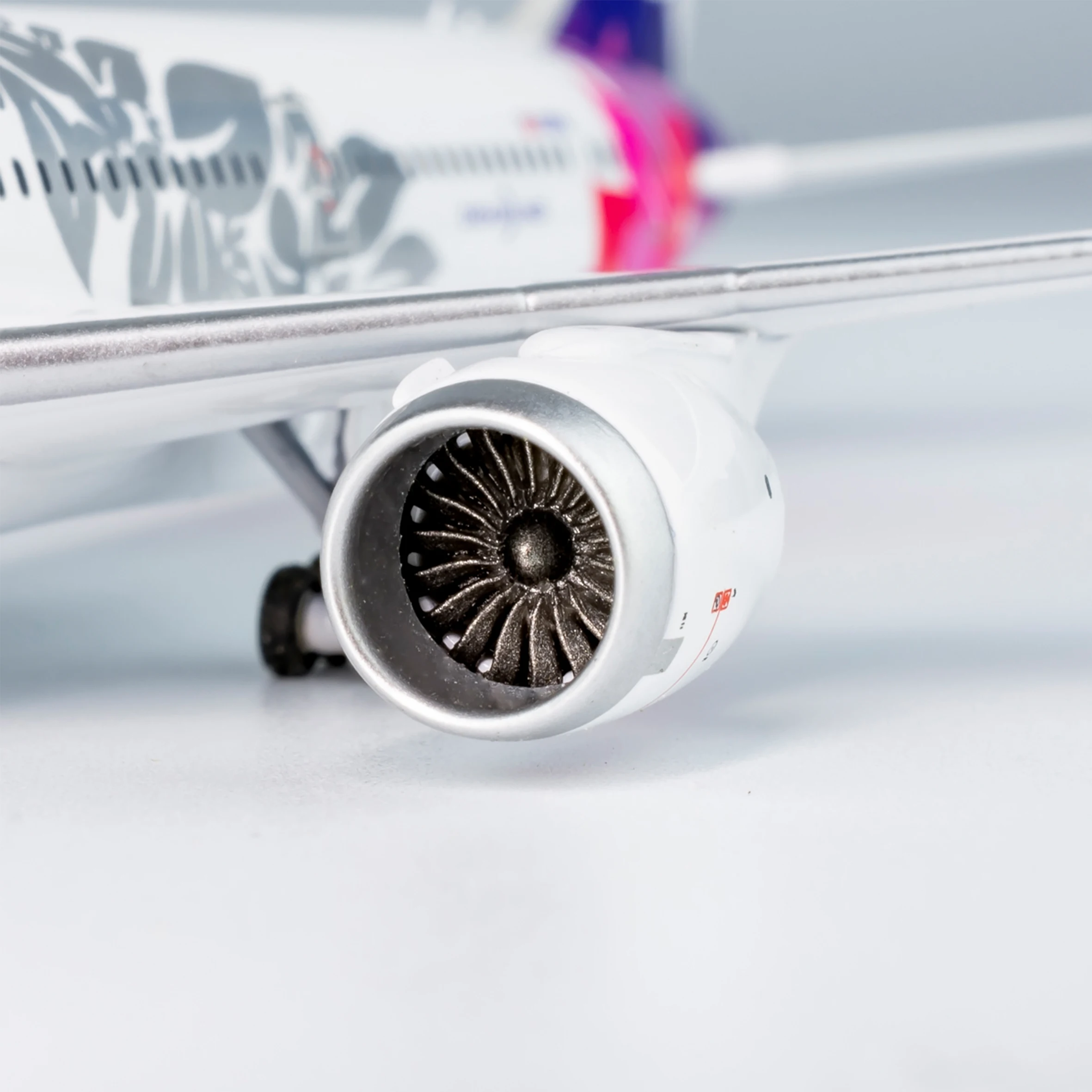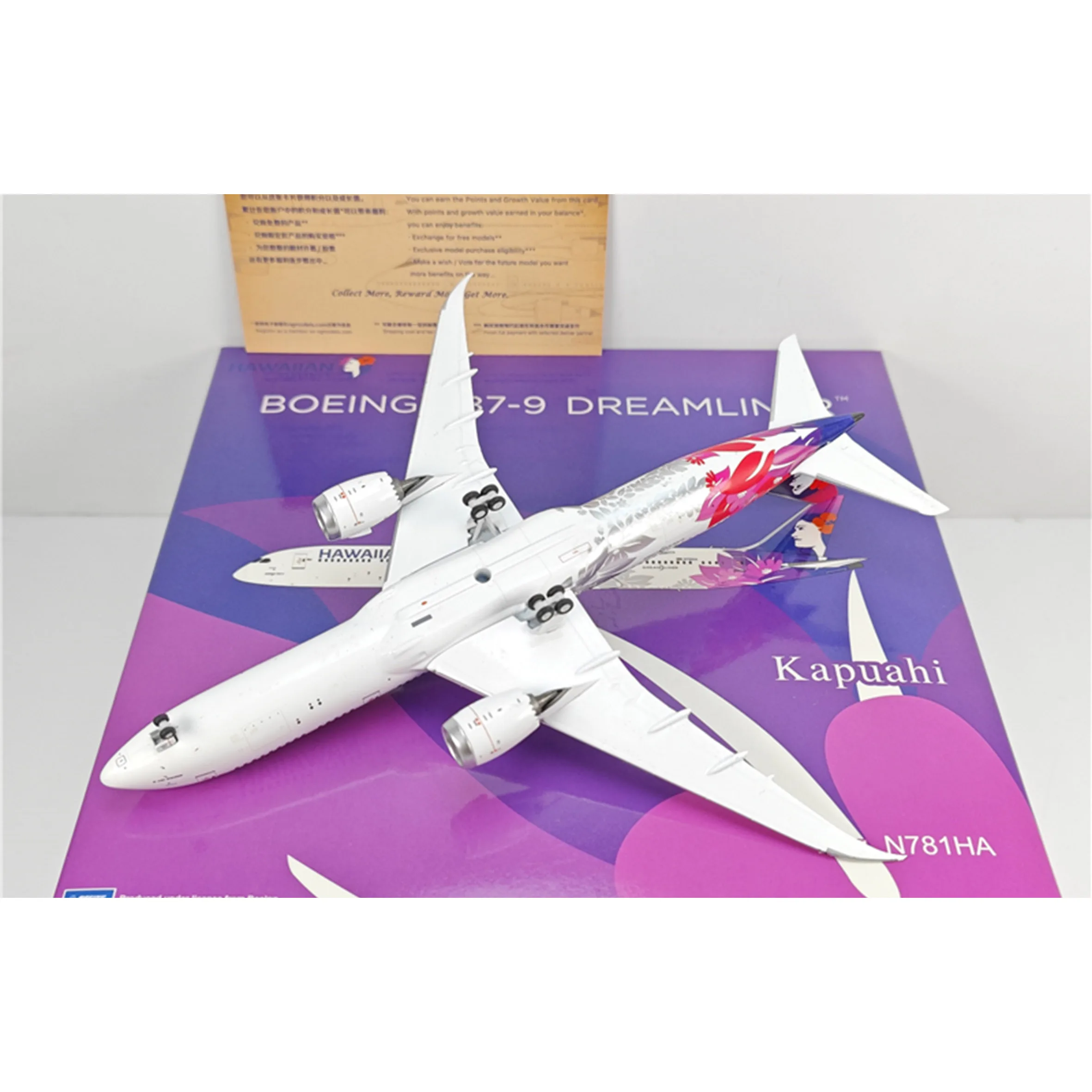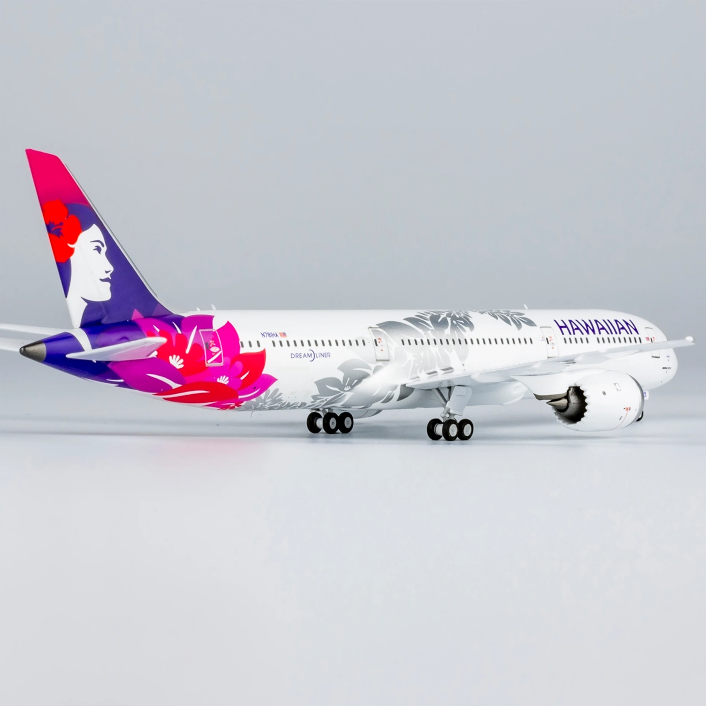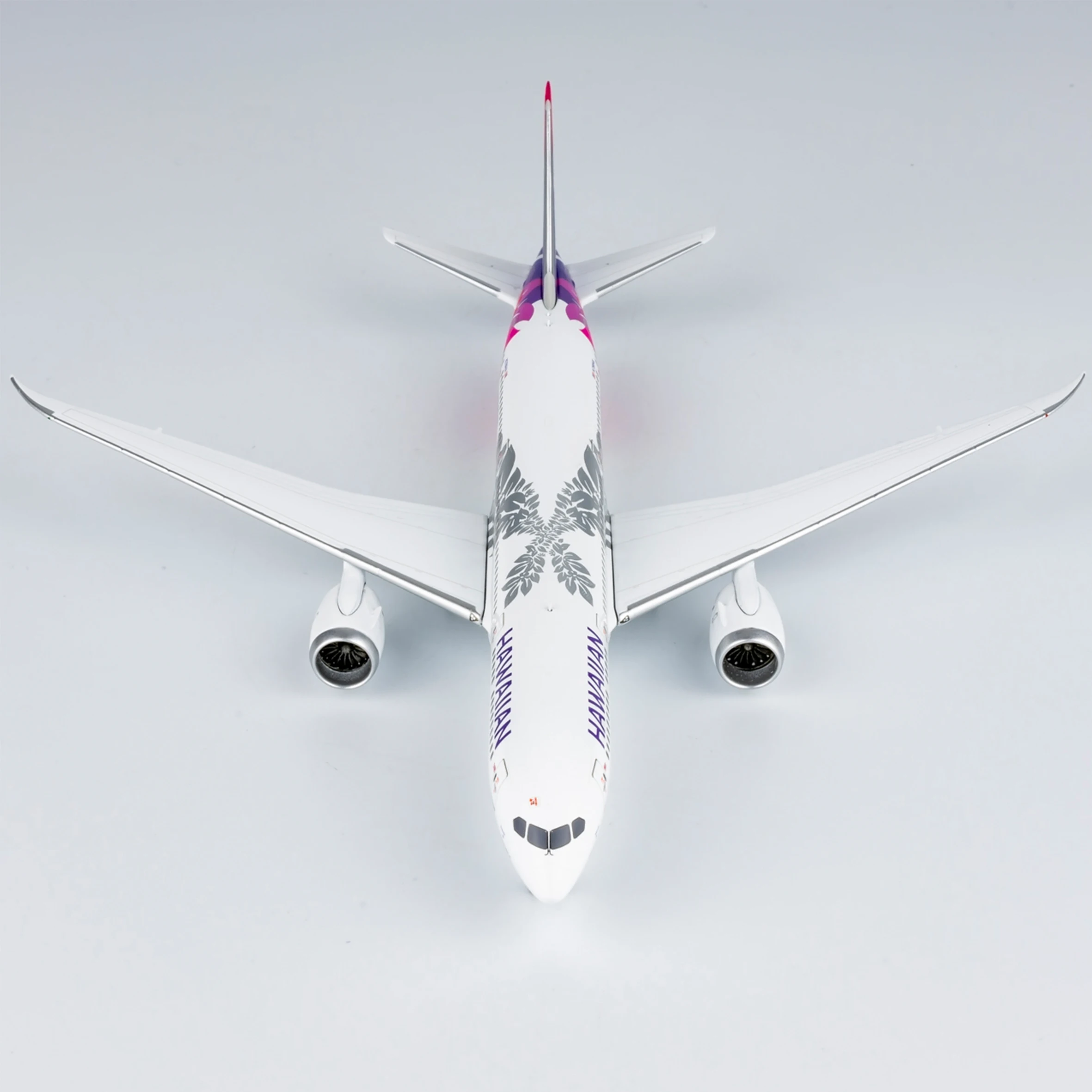 Bring the world of aviation to your collection with this meticulously crafted 1/400 scale model of the Hawaii B787-9 aircraft, registration N781HA. Made from durable metal, this diecast replica captures stunning details, from the sleek white fuselage to the vibrant Hawaiian Airlines livery featuring a tropical floral motif and a colorful tail design. Measuring approximately 15.75 cm in length with a wingspan of 15 cm, this model offers an impressive display of craftsmanship perfect for enthusiasts and collectors. Whether you’re setting up a detailed aviation display or adding a unique piece to your collection, this Hawaii B787-9 model allows you to enjoy the spirit of Hawaiian skies from the comfort of your space.