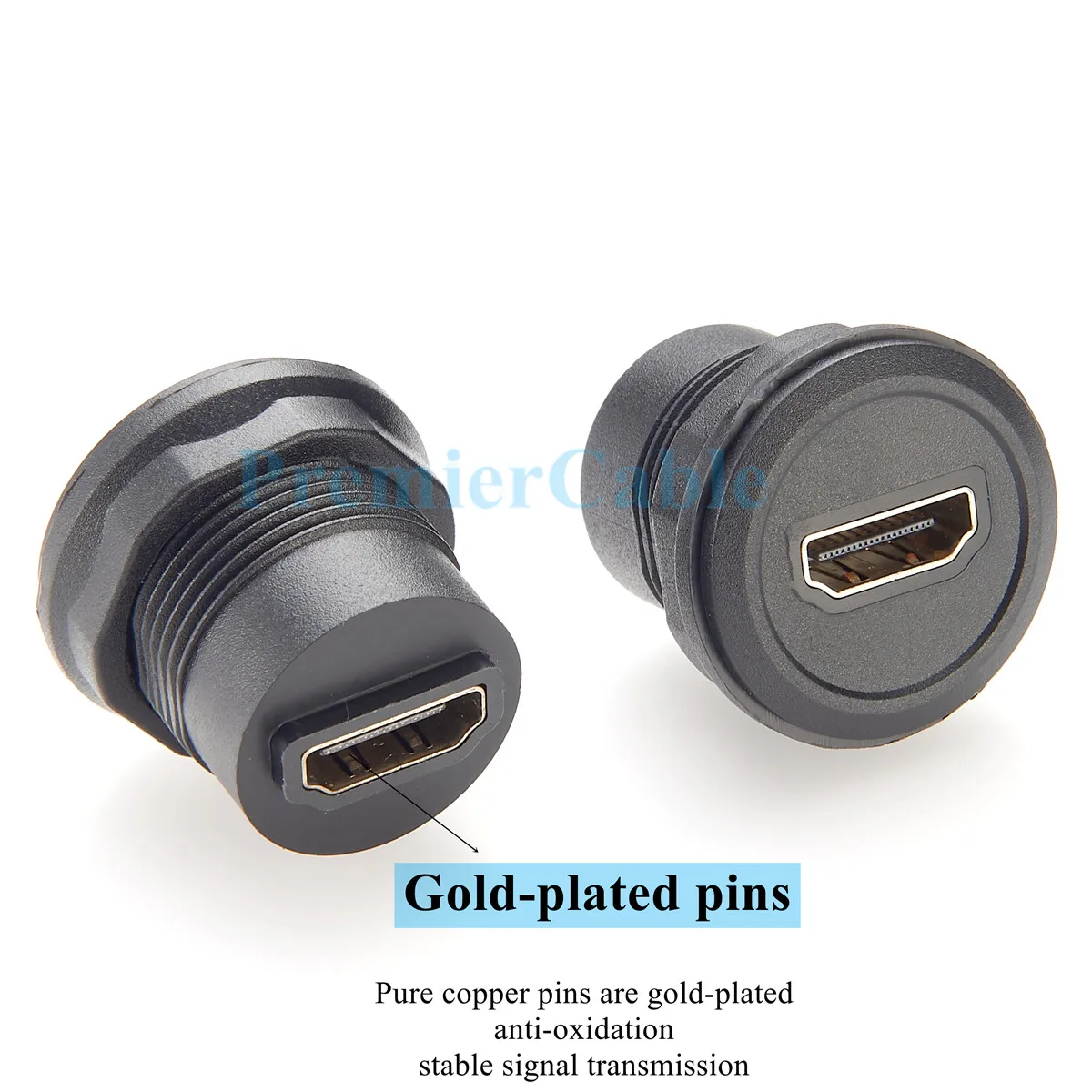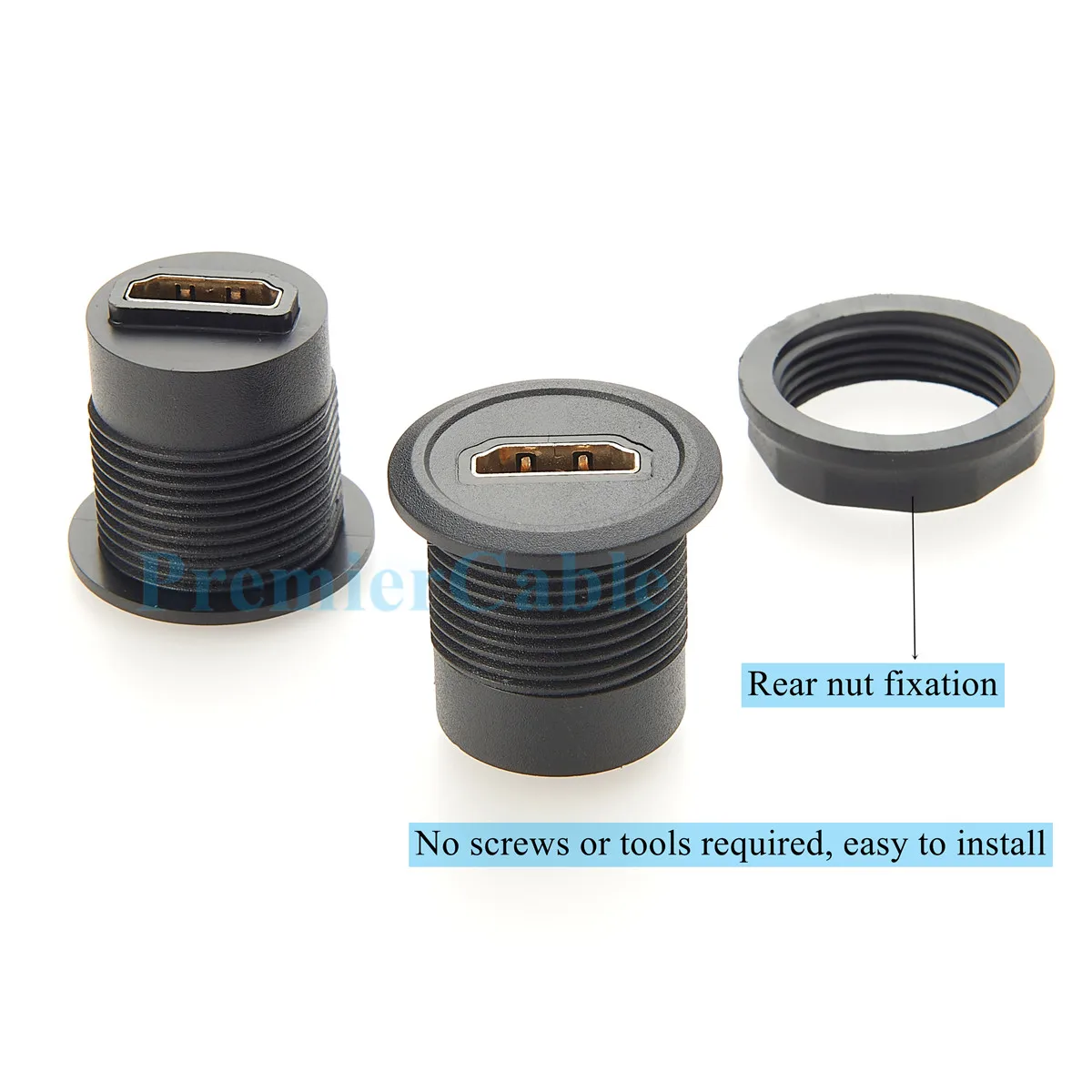 Experience the reliability and sleek design of this HDMI female-to-female gender changer, perfect for professional AV setups or home entertainment. Crafted from durable zinc alloy with a scratch-resistant finish, it offers a modern, professional aesthetic. The compact cylindrical shape features gold-plated ports, ensuring excellent conductivity and corrosion resistance. Its threaded rear section with grooved detailing provides a secure fit into panel cutouts measuring 25mm, making installation straightforward and stable. The PVC jacket with a pure copper core guarantees high-quality digital signal transmission, supporting 4K resolution at 30Hz and uncompressed stereo sound. This adapter allows you to extend or join HDMI cables effortlessly, providing a fuss-free experience for high-definition video and audio. Designed for versatility, it’s ideal for use in studio, live performance, or home AV systems, ensuring a reliable and high-performance connection every time.
