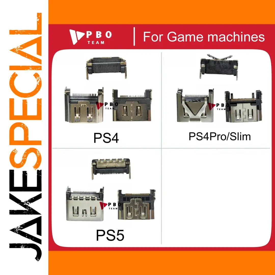 Experience seamless gaming with this set of high-quality HDMI socket jacks designed specifically for Sony PlayStation consoles. These connectors feature a sleek, metallic finish that highlights durability and precision engineering. Tailored to fit PS4, PS4 Slim, PS4 Pro, and PS5 models, each port ensures excellent data and audio transmission. The connectors boast a robust rectangular shape with smooth edges and are equipped with clips or latches to guarantee a secure connection. Constructed from corrosion-resistant, gold-plated contacts, they promise long-lasting performance. Whether you're repairing an existing port or upgrading, these connectors blend reliability with a modern, industrial aesthetic that complements your console setup perfectly.