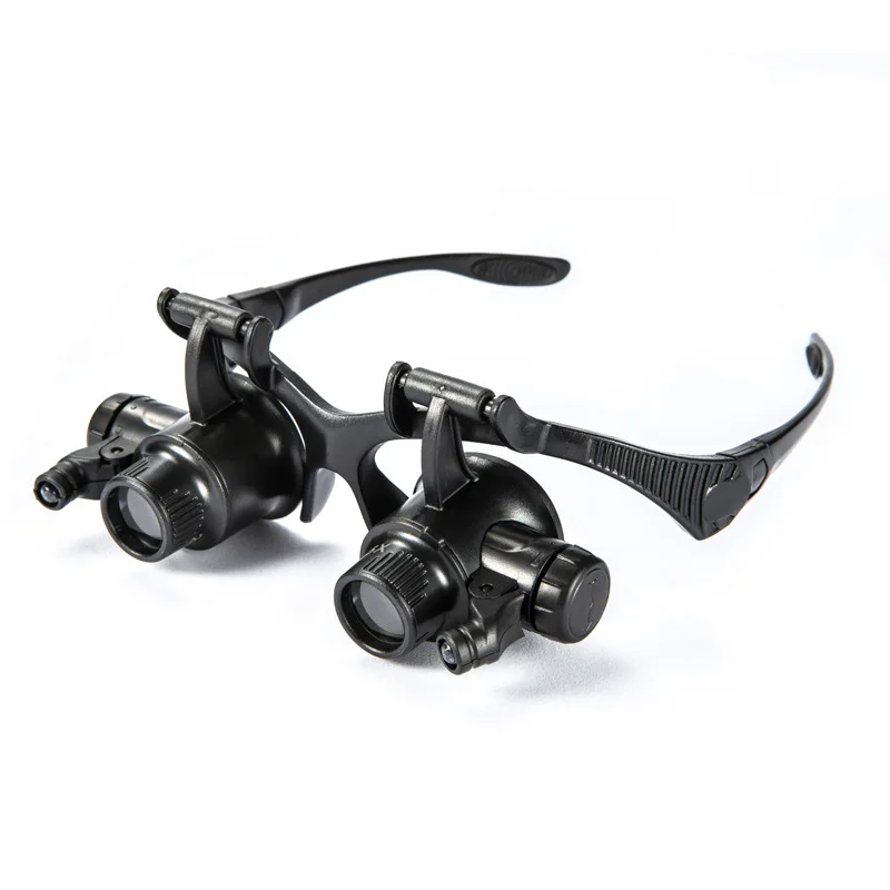 Experience clarity like never before with this precisely crafted head-mounted magnifying glass, designed for meticulous maintenance and detection tasks. Featuring adjustable magnification levels of 10x, 15x, 20x, and 25x, it allows you to customize focus for optimal viewing in various scenarios. The integrated bright LED lights ensure excellent illumination, even in low-light conditions, enhancing your precision. Constructed from durable plastic, sturdy metal, and clear acrylic lenses, this device balances robustness with visual clarity. Its ergonomic curved plastic frame offers a comfortable fit, while adjustable hinges and control dials on each side provide a personalized experience. Ideal for professionals needing high-level detail work, this magnifier combines versatility, comfort, and durability.
