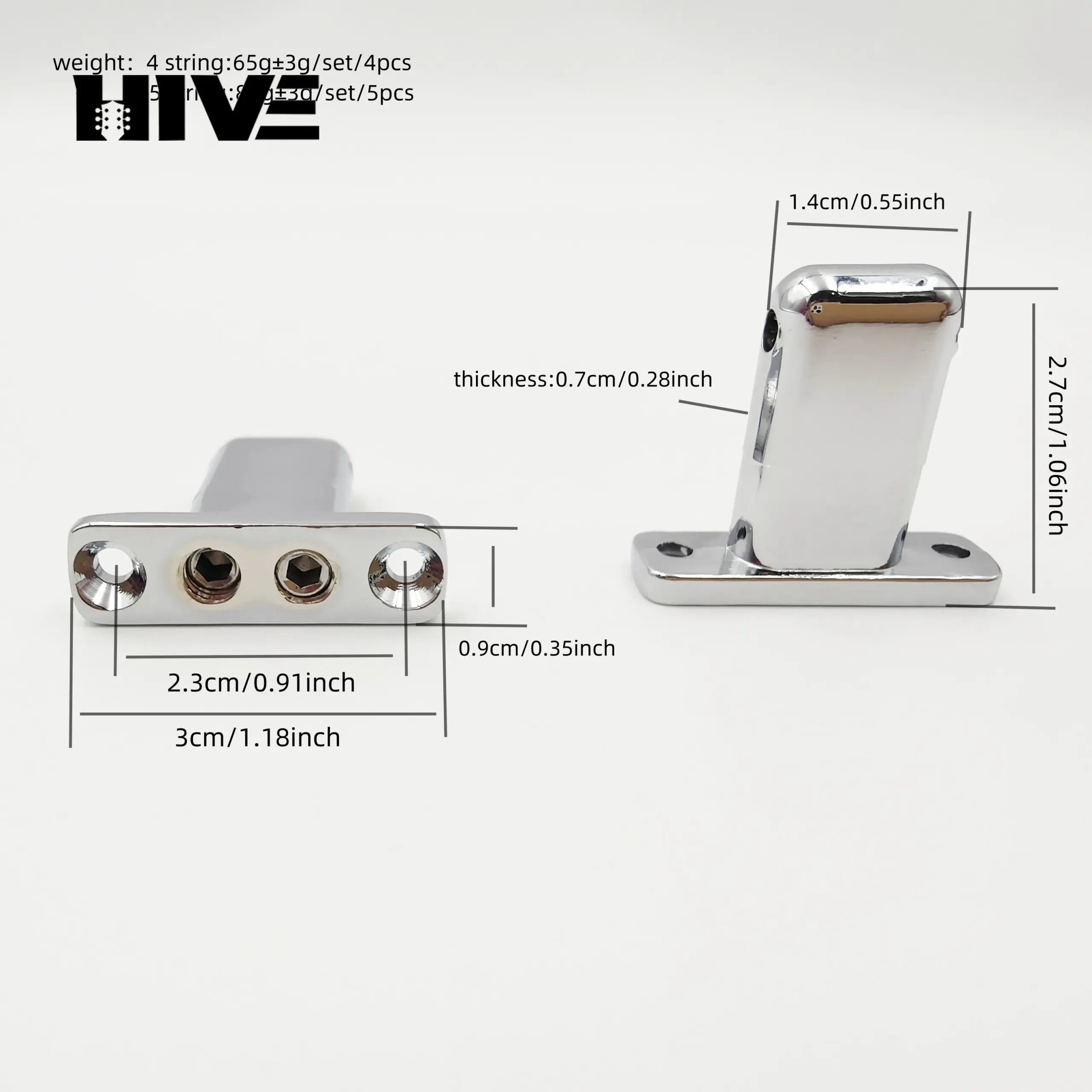 - Designed for 4-string and 5-string guitars with a rectangular shape and polished metallic surface.