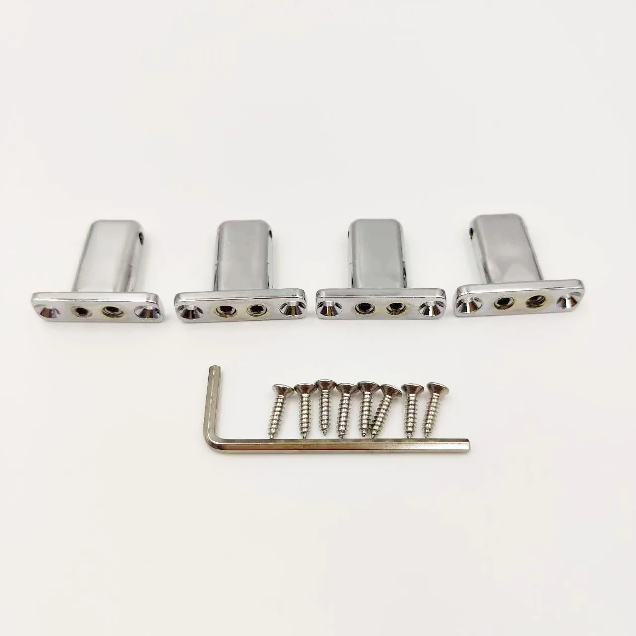Experience a sleek upgrade to your electric guitar with this headless winding lock set, available in black, gold, and silver finishes. Designed for both 4-string and 5-string models, these high-quality metal accessories provide a modern, minimalist look that enhances your instrument's aesthetic. The polished, rectangular shape and precise screw holes ensure a seamless fit and reliable performance. Crafted from durable metal, these locks are perfect for customizing or repairing your electric guitar, giving you confidence in their longevity and style. With included screws and a wrench, installation is straightforward, saving you time and effort. Elevate your guitar’s look while maintaining excellent playability and durability with this premium accessory set.