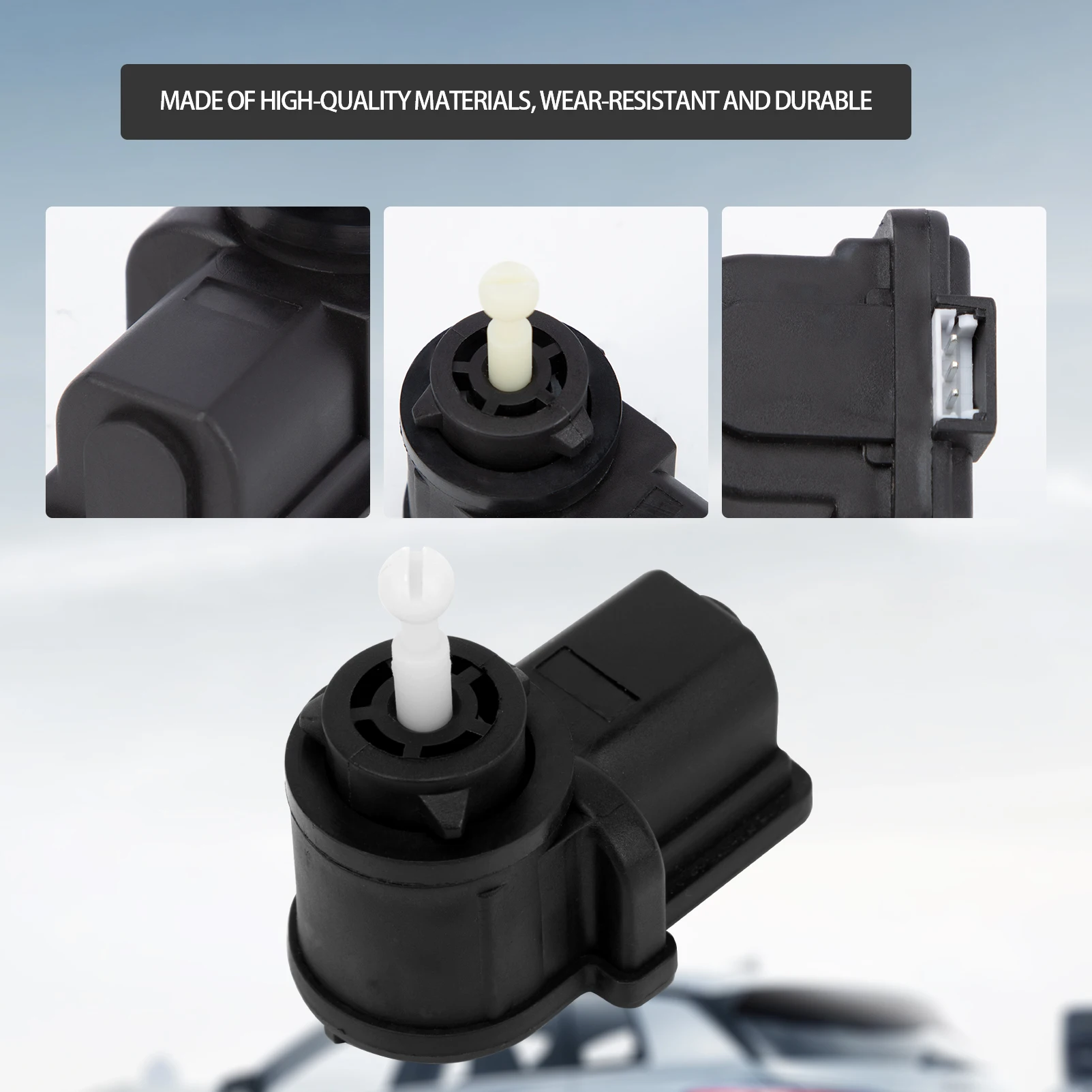Enhance your vehicle’s headlight functionality with this pair of black actuator headlight range adjustment motors, featuring OEM numbers 1J0941295B, 1J0941295F, and 1J0941295C. Constructed from durable black plastic, each motor has a compact, rectangular body with subtle ridges and a gentle curvature for seamless integration. A cylindrical protrusion at one end connects to the headlight adjustment linkage, while a white plastic cross-slotted shaft on top ensures precise engagement with the headlight mechanism. Compatible with various models including A2 (2000–2005), A4 (1994–2004), Q7 (2006–2010), Lupo (1998–2005), Ibiza III/IV (1999–2009), and Cordoba (1999–2009), these motors are designed to restore optimal headlight leveling and improve driving safety.