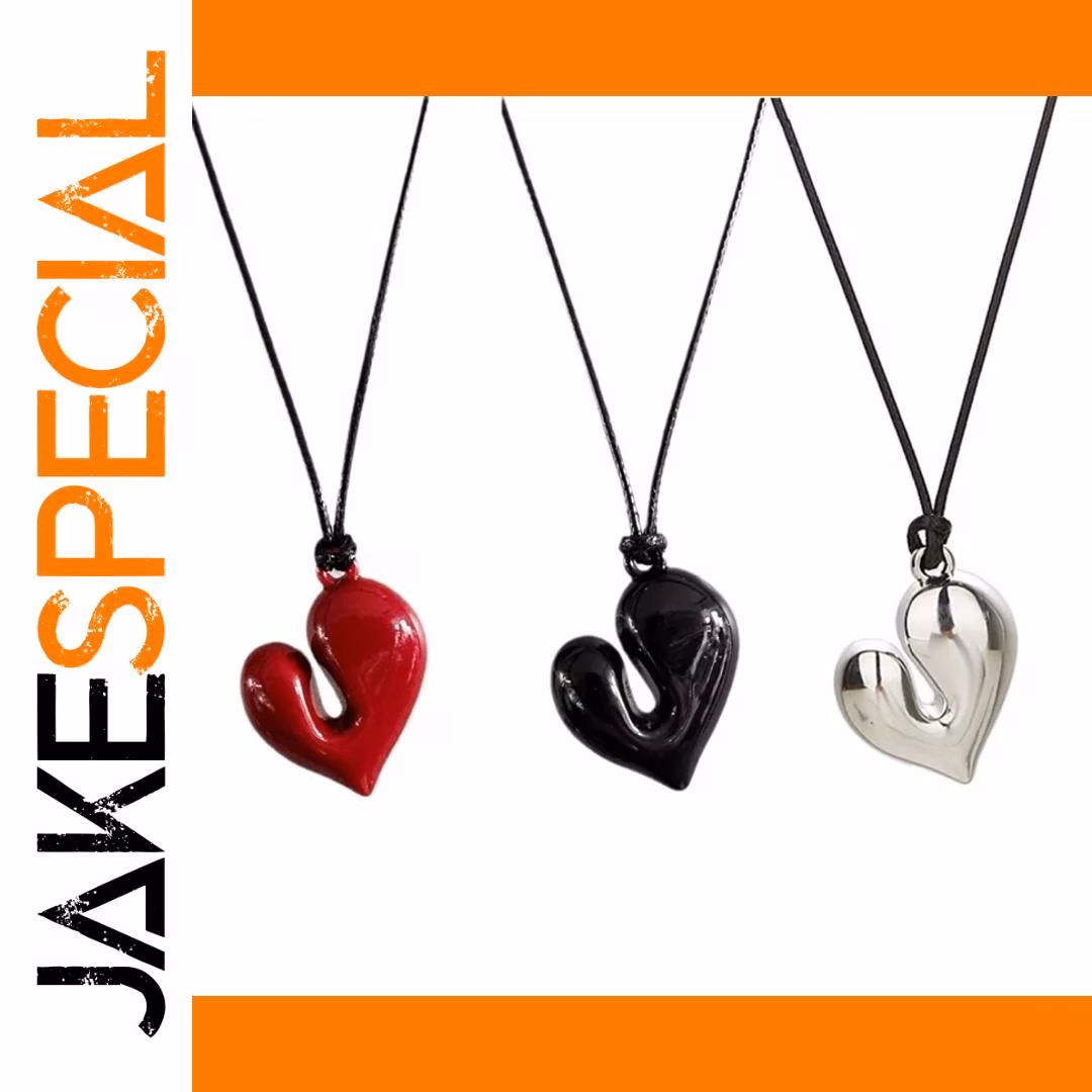 - This women’s pendant necklace features a glossy acrylic heart in red, black, or silver, designed with a smooth, shiny surface and a three-dimensional appearance for visual impact.