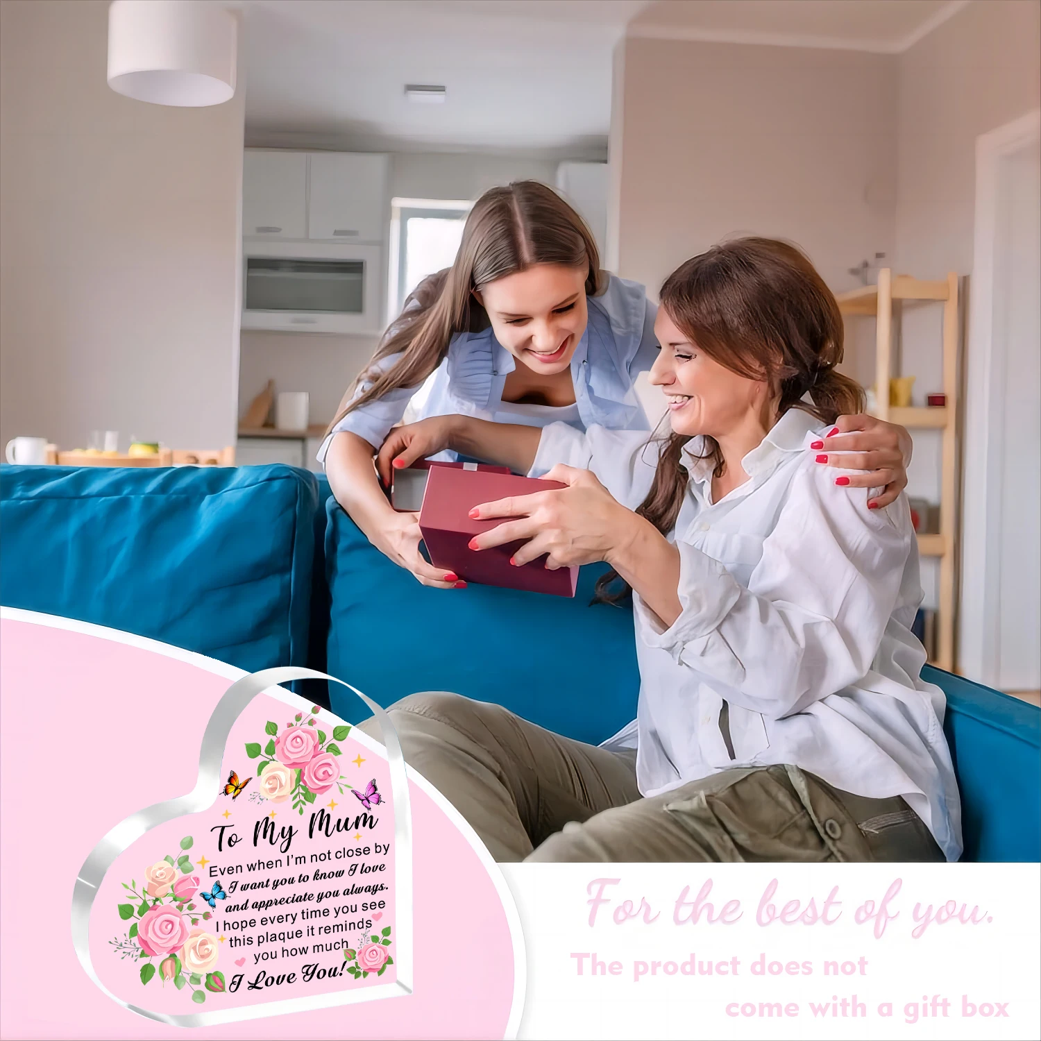 Express your feelings with this stunning, sentimental gift that captures the warmth, gratitude, and love you feel for your mother. Its cheerful design and heartfelt message are sure to brighten her day and become a cherished keepsake. Imagine her delight as she receives this heartwarming plaque, reminding her of your bond every time she sees it. It’s not just a decorative piece but a daily reminder of your appreciation. Whether for Mother’s Day, her birthday, or simply because she means the world to you, this plaque is a surefire way to make her feel special and loved.
