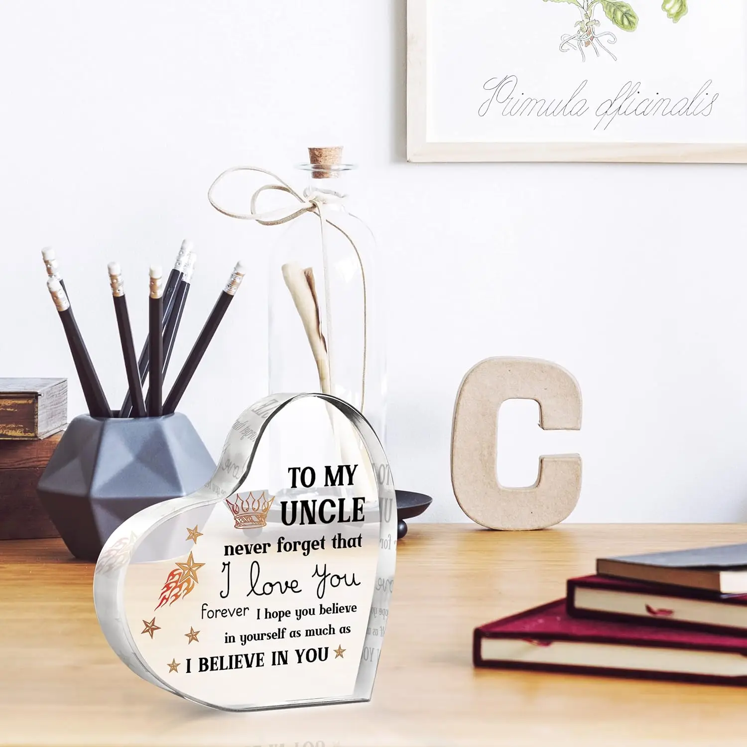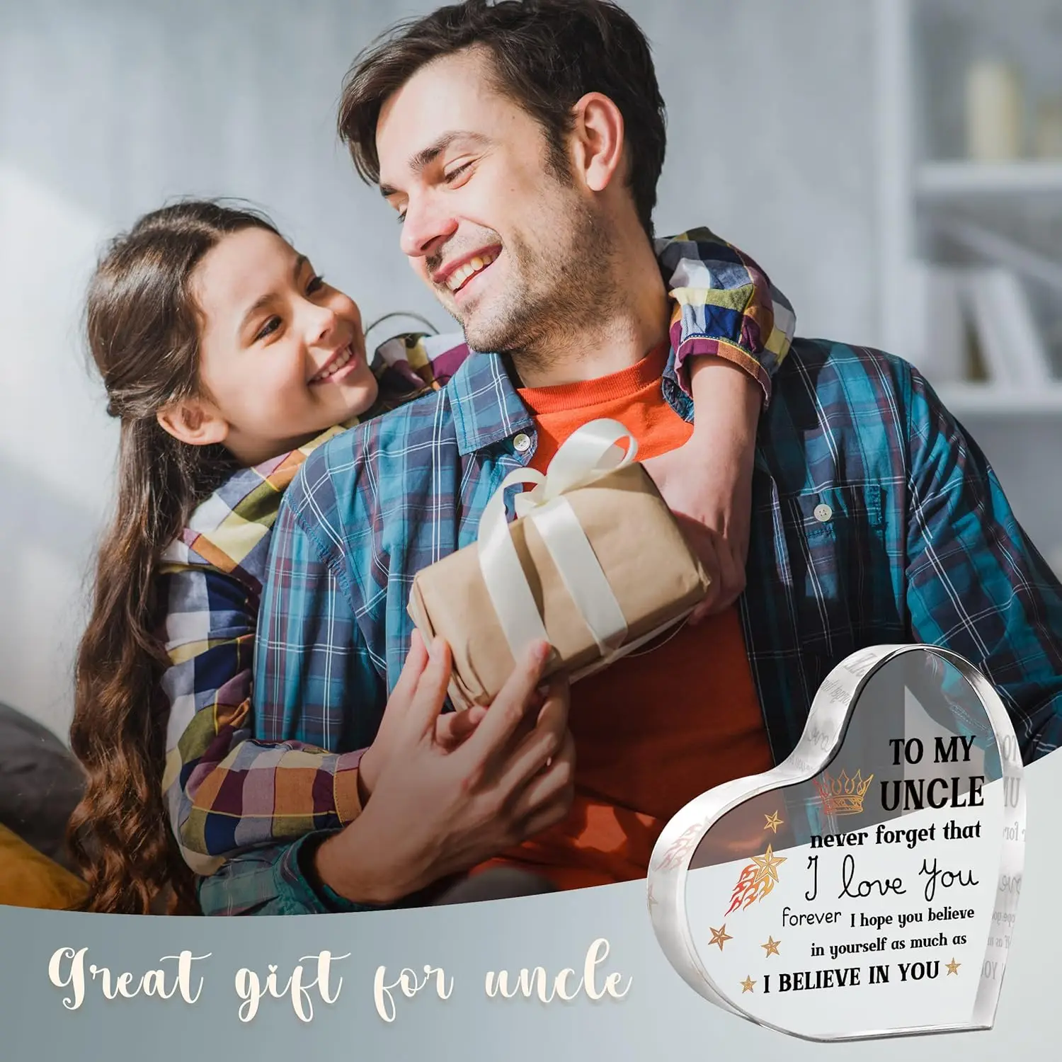 Imagine the smile on your uncle's face as he receives this personalized, elegantly designed keepsake. It’s more than just a gift; it’s a symbol of love and encouragement, perfect for many special moments. Add this beautiful acrylic souvenir to your cart now and create cherished memories with an item he'll hold close forever. Celebrate your bond and show your appreciation with a gift that speaks directly to the heart.