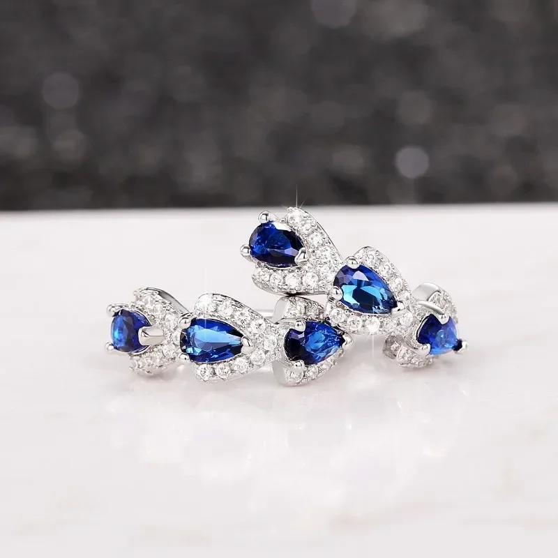 Enhance your elegance with these heart-shaped zircon stud earrings crafted from imitation rhodium-plated 925 sterling silver, weighing 1.6 grams. Featuring three vertically aligned pear-cut blue zircon stones surrounded by sparkling cubic zirconia accents, they exude modern sophistication and trendiness. Designed for women, these versatile earrings are perfect for all-season wear and suitable for various occasions including parties, office, and gifting events. With their delicate, graceful design and shiny finish, they add a touch of sparkle to any outfit, making them an ideal gift for friends, family, or loved ones.