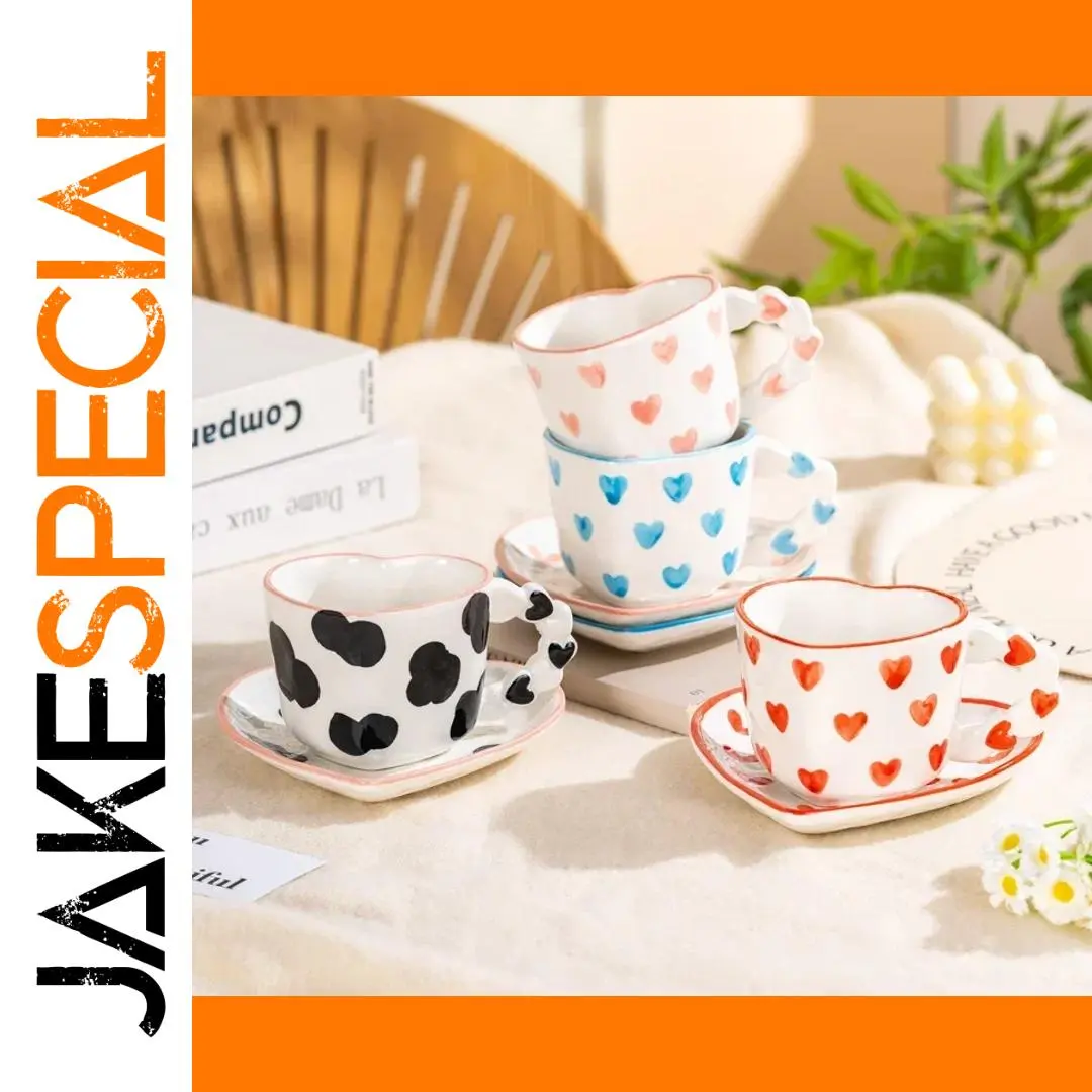 Imagine yourself starting your day with this delightful cup, adding a splash of color and fun to your routine. The set includes a playful heart-shaped cup with a glossy glazed finish, available in vibrant colors like pink, blue, red, yellow, purple, or with a whimsical cow pattern. Its 260ml capacity makes it perfect for enjoying afternoon tea or a cozy drink. The matching saucer complements the cup’s cheerful design, creating a cute display that lifts your mood. Crafted from eco-friendly ceramic, the cups are durable, dishwasher safe, and microwaveable, ensuring practical everyday use. Whether as a gift or a treat for yourself, this set combines style, practicality, and a joyful aesthetic suited for festivals or special moments.