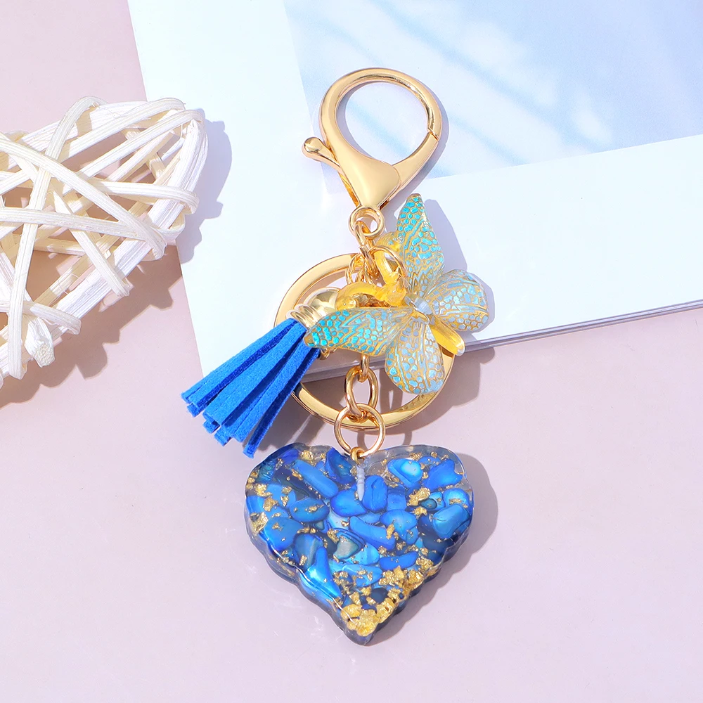 Imagine adding a touch of romance and charm to your daily accessories with this beautiful heart-shaped resin keychain from Lesa. Crafted with a smooth resin surface and finished in luxurious champagne gold, it exudes elegance and playful femininity. The pendant features vibrant marble patterns and subtle gold flecks, complemented by delicate tassels and intricately detailed butterfly charms. Measuring approximately the optimal size for maintaining a subtle yet eye-catching presence, this keychain is perfect for keys, bags, or as a thoughtful gift. Its versatile design makes it suitable for casual outings, parties, and special celebrations alike, reminding you of love’s beauty every day. Enhance your style with this wearable piece of art that blends fashion and affection seamlessly.
