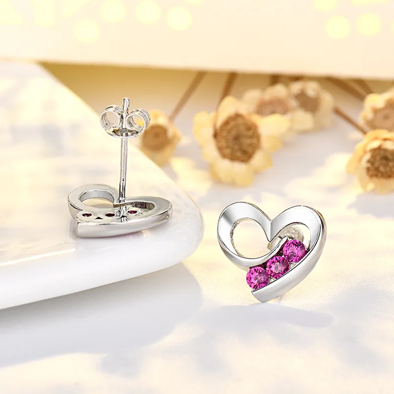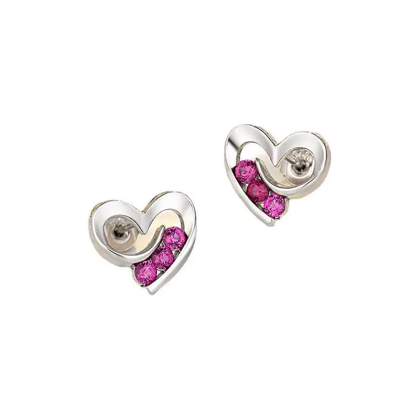 - Decorated with three vibrant pink cubic zirconia stones along the inner edge of the heart, adding a splash of color and delicate sparkle to your look.