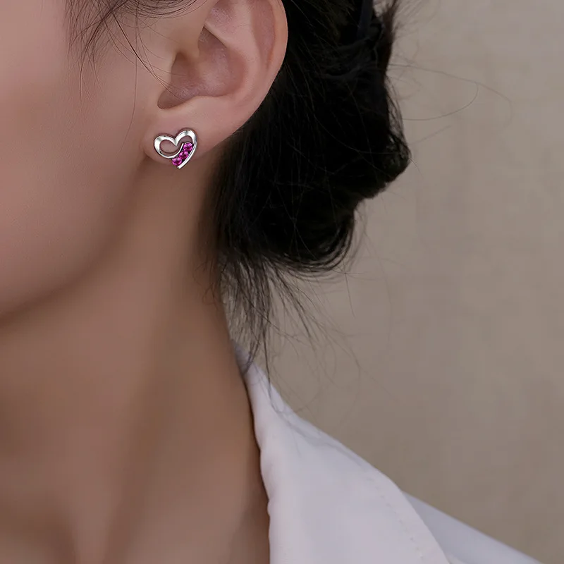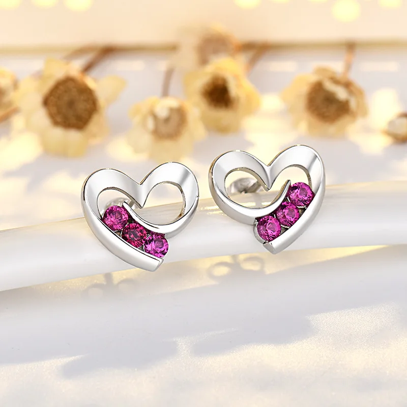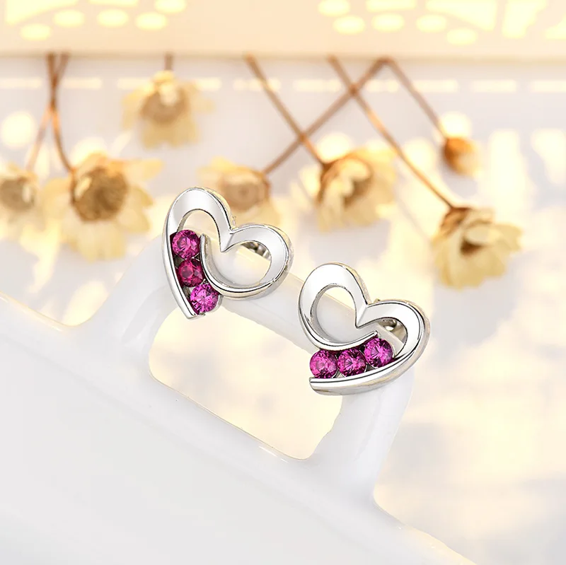 Imagine adding a delicate touch of romance to your daily style with this pair of beautiful heart-shaped stud earrings. Crafted from Tibetan silver and copper, these earrings feature a polished, shiny finish that reflects your elegant personality. The charming design includes a smooth, clean heart outline, accented with three vibrant pink cubic zirconia stones along the inner edge, offering a subtle pop of color and sparkle. Ideal for all seasons—spring, summer, autumn, and winter—these versatile earrings are perfect for enhancing your look at parties, at the office, or as a meaningful gift for loved ones. Their lightweight yet sturdy construction ensures comfort and durability for everyday wear.