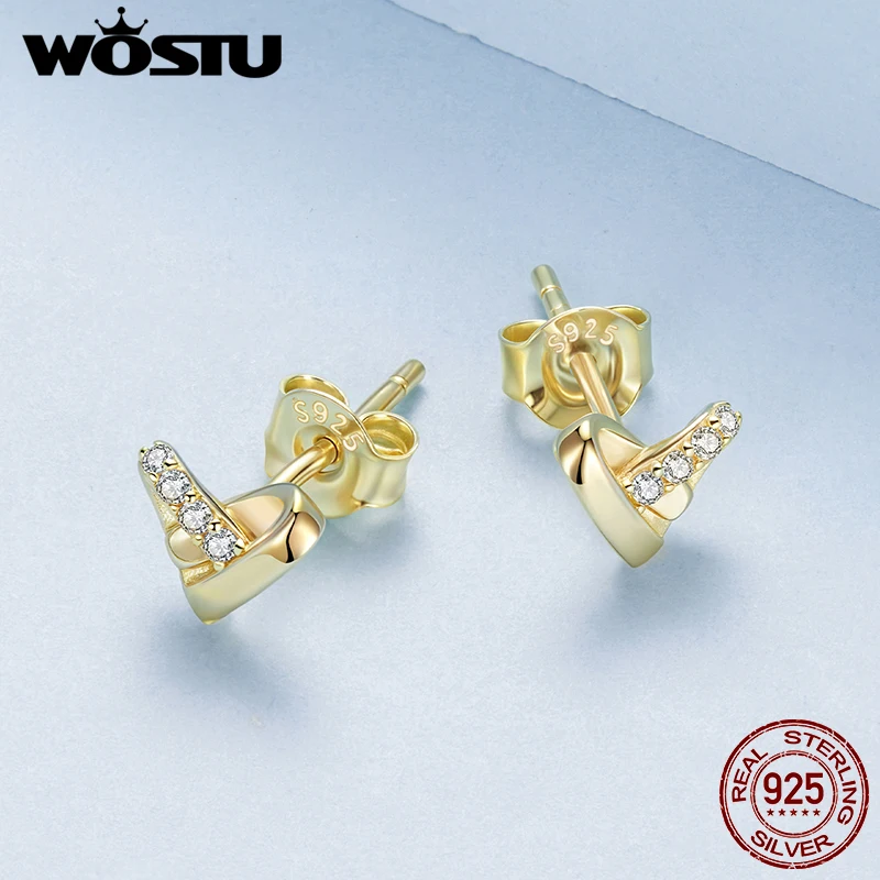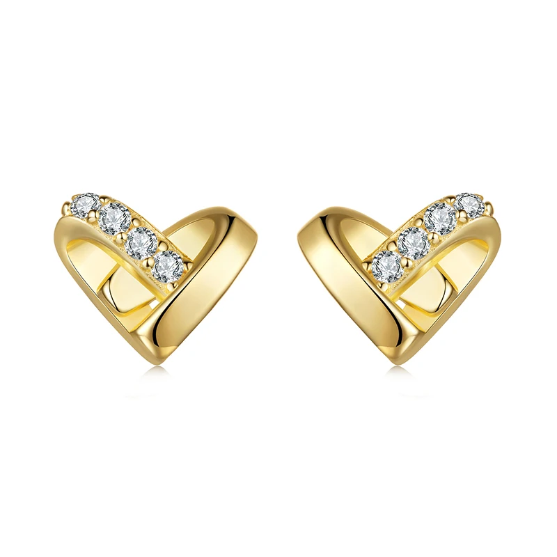 Elevate your look with these delicate heart-shaped stud earrings crafted from 925 sterling silver and finished with gold. Measuring 0.5 x 0.7 cm and weighing approximately 0.8 grams each, they feature a stunning pavé setting of five sparkling cubic zirconia stones, adding a touch of brilliance. Secured with a secure push-back clasp, these earrings combine elegance and comfort, making them perfect for parties or everyday wear. The high-quality design is accompanied by a certificate of authenticity confirming their sterling silver content, and each piece comes with a free jewelry box. Customize them for special occasions or bulk orders at competitive prices.