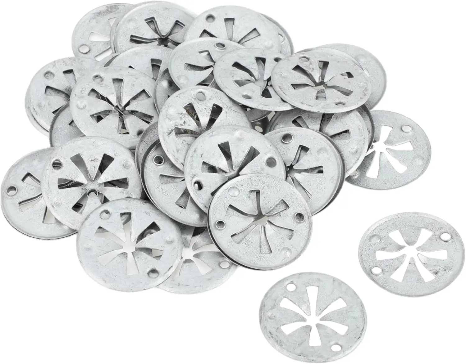 Imagine your vehicle running smoothly with enhanced heat protection—these high-quality metallic heat insulation pads help you achieve just that. Crafted from durable aluminum and steel, they feature a sleek, silver reflective finish that exudes industrial elegance. With an intricate star-shaped pattern and precise cutouts, these oval pads not only provide excellent thermal management but also add a touch of sophistication to your exhaust system. Their compact size makes installation straightforward, thanks to small mounting holes near each rim. Whether you need a handful or a bulk pack, these pads are perfect for maintaining optimal engine performance and protecting vital components. Trust in their high-temperature resistance and expert craftsmanship for lasting performance.