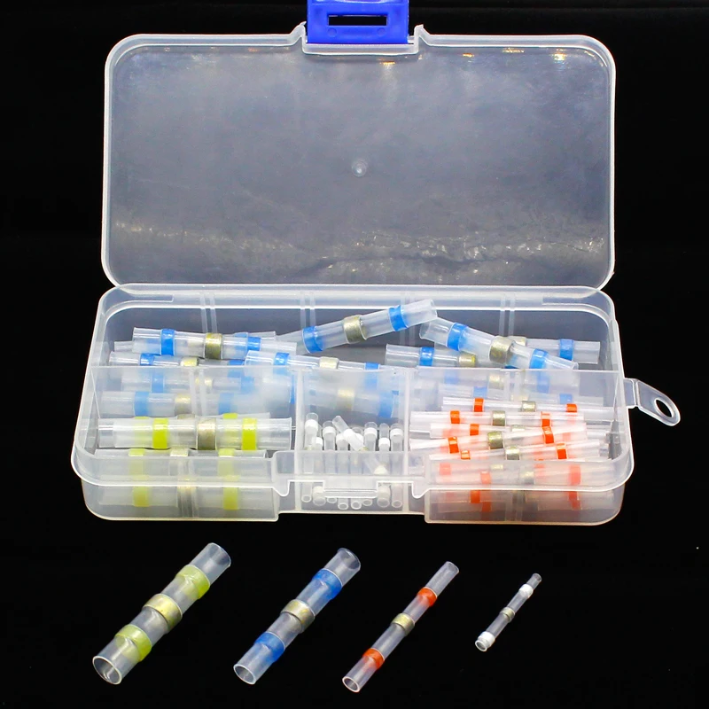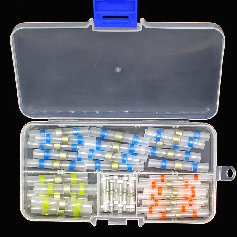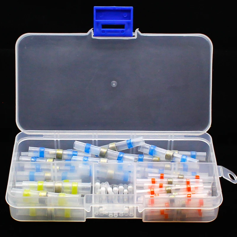 - Includes 50 heat shrink solder sleeves and crimp connectors in a transparent, organized plastic box for easy access and storage.