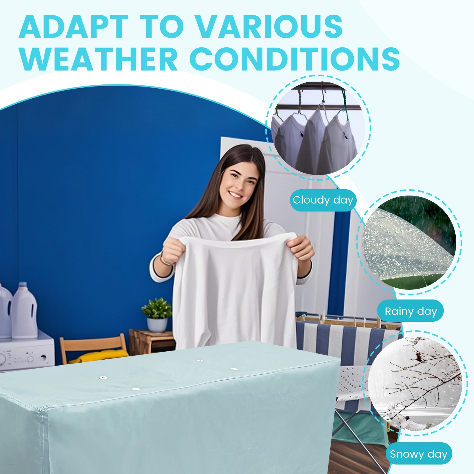 - Suitable for all weather conditions, including rainy and snowy environments, helping you dry clothes efficiently outside or inside regardless of weather variability.