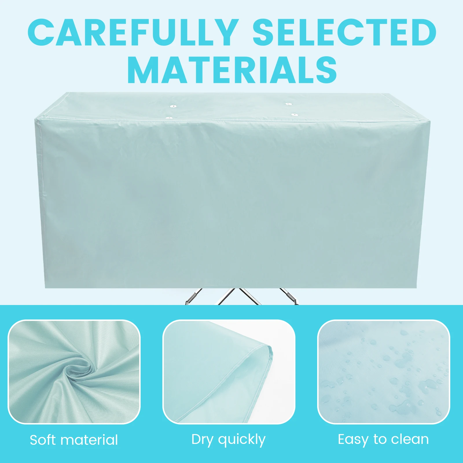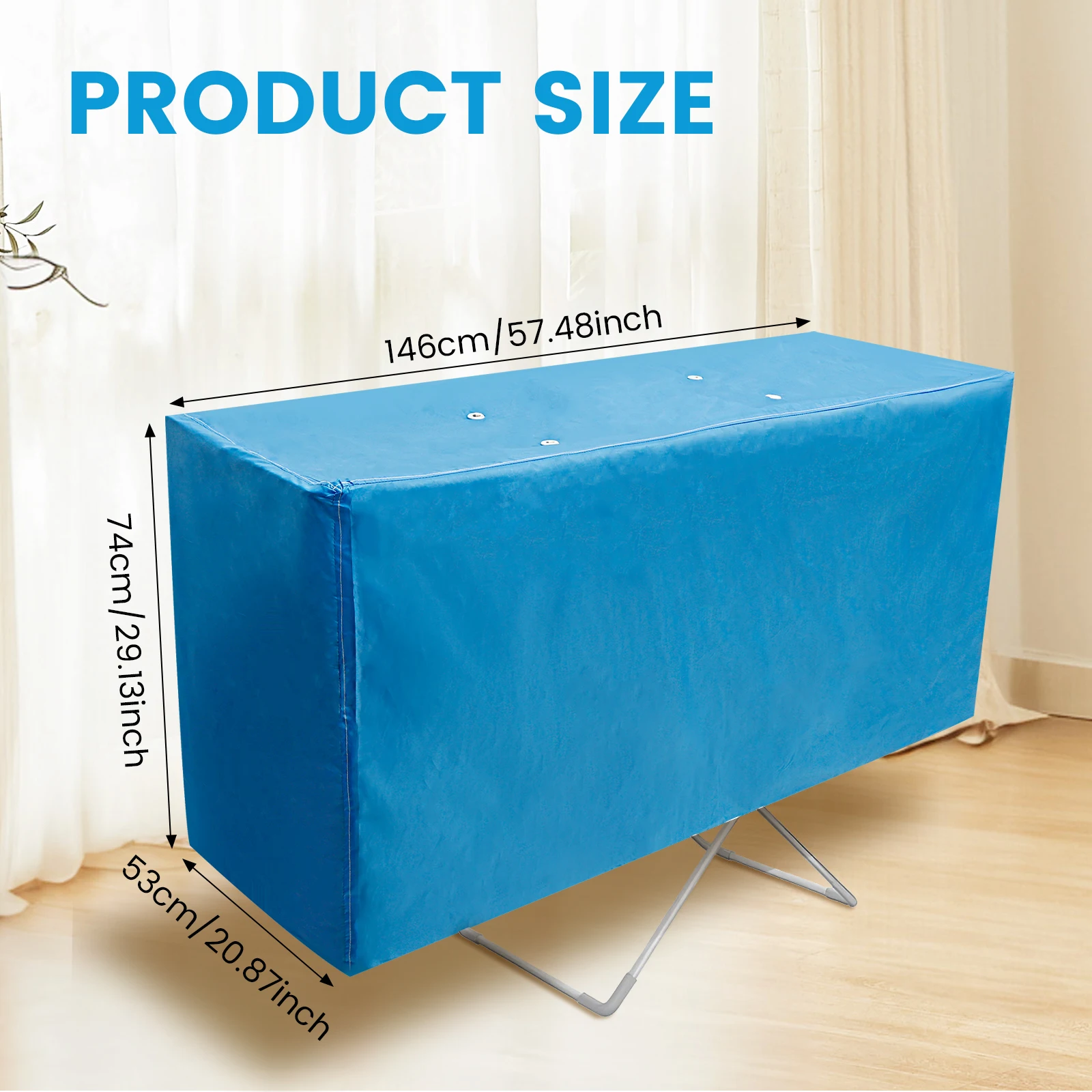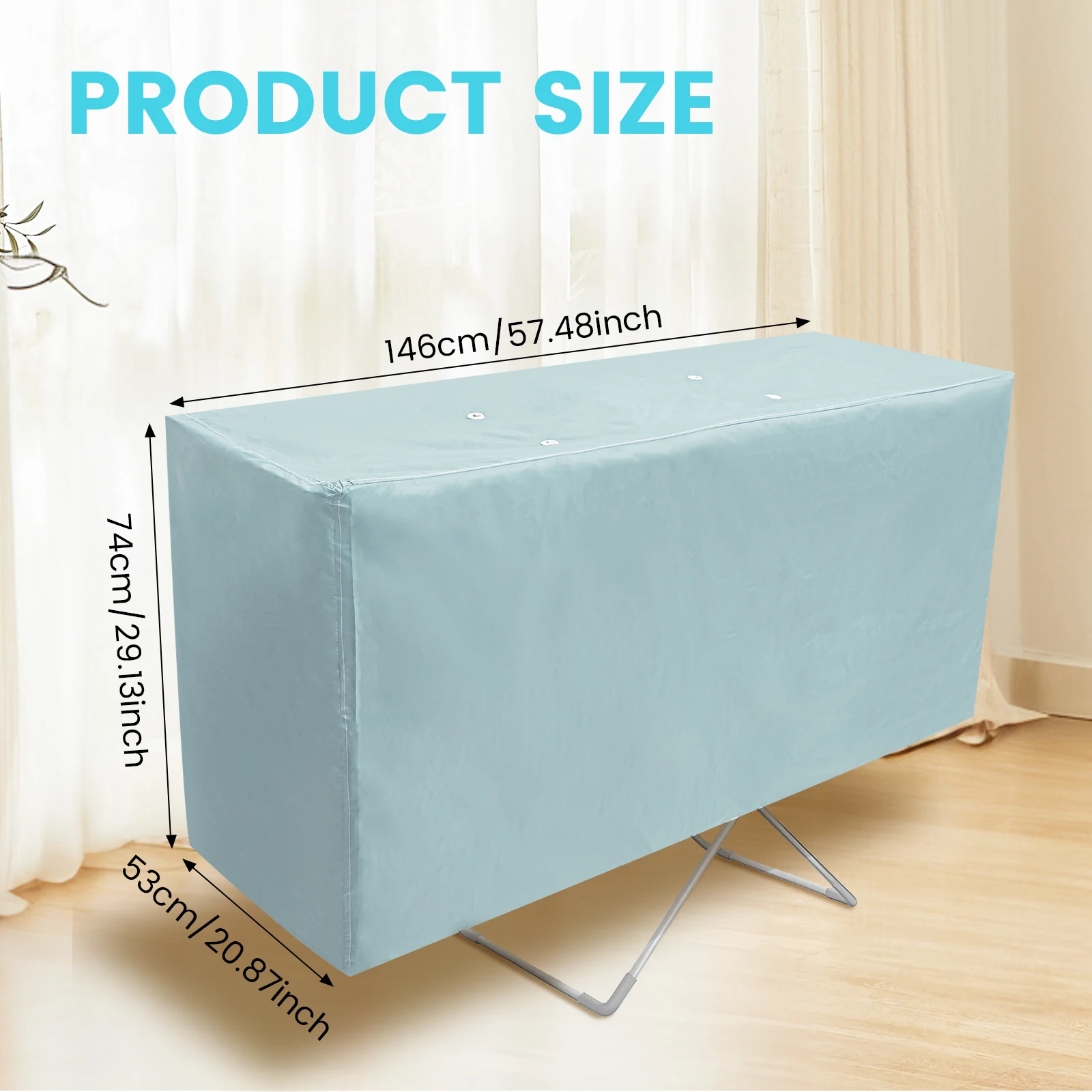Experience efficient and reliable drying with this heated clothes airer drying cover tailored for wing-type dryers. Crafted from durable, high-quality polyester, it features a sleek light blue finish that enhances its soft, water-resistant surface. Designed to fully enclose your dryer, it offers a snug fit measuring 1460 mm by 530 mm and a height of 740 mm, ensuring full coverage and maximizing heating efficiency. Its lightweight yet sturdy construction helps retain heat, leading to faster drying times and optimal heat conservation without overheating your clothes. The foldable design makes storage effortless, and it’s perfect for all weather conditions, whether rainy or snowy, providing a dependable solution for drying clothes anytime, anywhere. Enjoy improved drying performance with this sleek, functional cover.