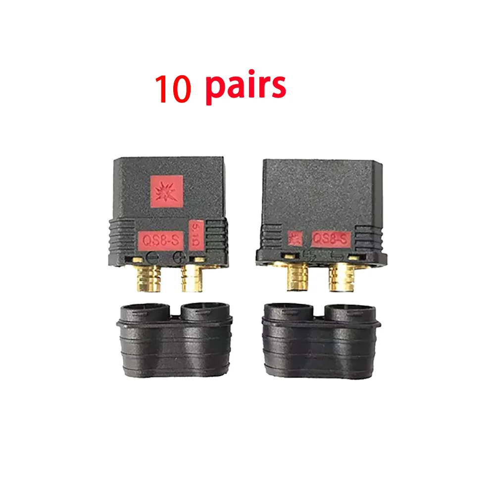Experience reliable power delivery with these robust, anti-spark gold-plated copper connectors. Designed for demanding applications like RC models, drones, and vehicles, they ensure safe and secure connections. Made from high-quality nylon with gold-plated copper contacts, these connectors handle up to 200A of current and operate efficiently at temperatures up to 200°C. The sleek rectangular housing provides a textured, easy-to-grip surface while the gold-plated contact ports ensure maximum conductivity and corrosion resistance, adding a premium feel. Available in various color options such as black and blue, and packaged in sets of 2, 5, or 10 pairs, these connectors are perfect for high-power, professional-grade setups. Their reverse polarity protection design guarantees safe, foolproof connections every time.