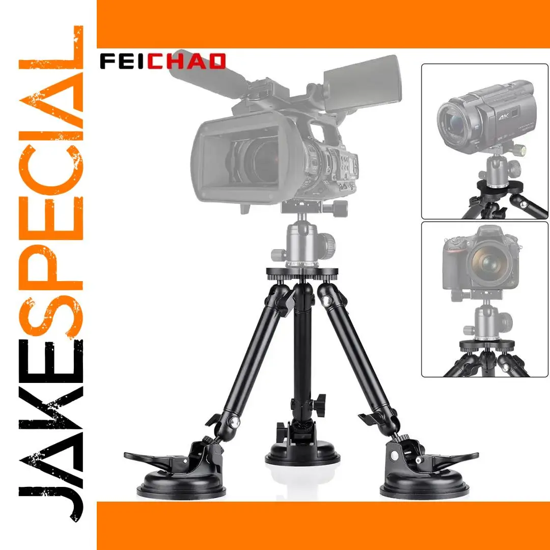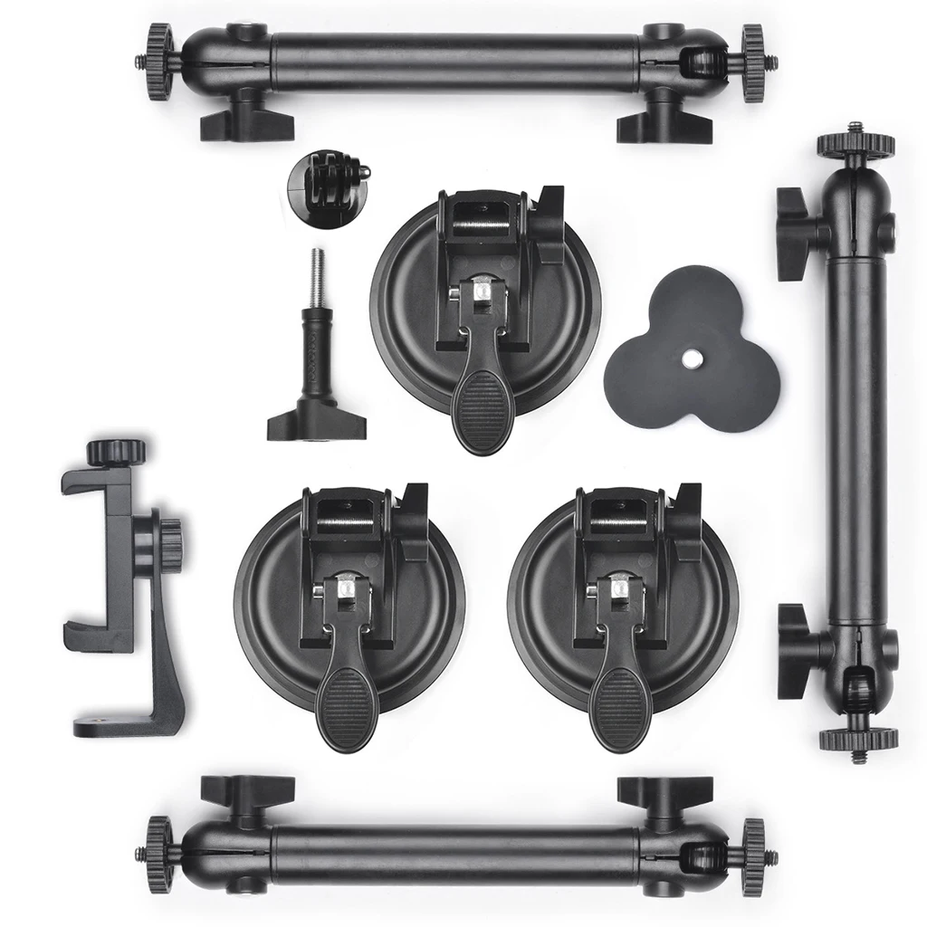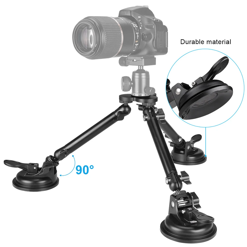 Experience unmatched stability and flexibility with this heavy-duty camera tripod mount featuring a triple vacuum suction system. Designed from durable aluminum alloy, it ensures a secure grip on surfaces like car windows, roofs, walls, and glass doors. Its sleek, industrial aesthetic combines a matte black finish with metallic accents, emphasizing strength and professionalism. The adjustable arm and ball joint provide precise positioning, allowing you to capture shots from multiple angles with ease. Whether you're filming on the move or stationary, this mount offers remarkable support up to 50kg horizontally and 25kg vertically, making it ideal for high-stress filming environments. Elevate your photography and videography projects with confidence, knowing you have a reliable and robust mounting solution at your fingertips.