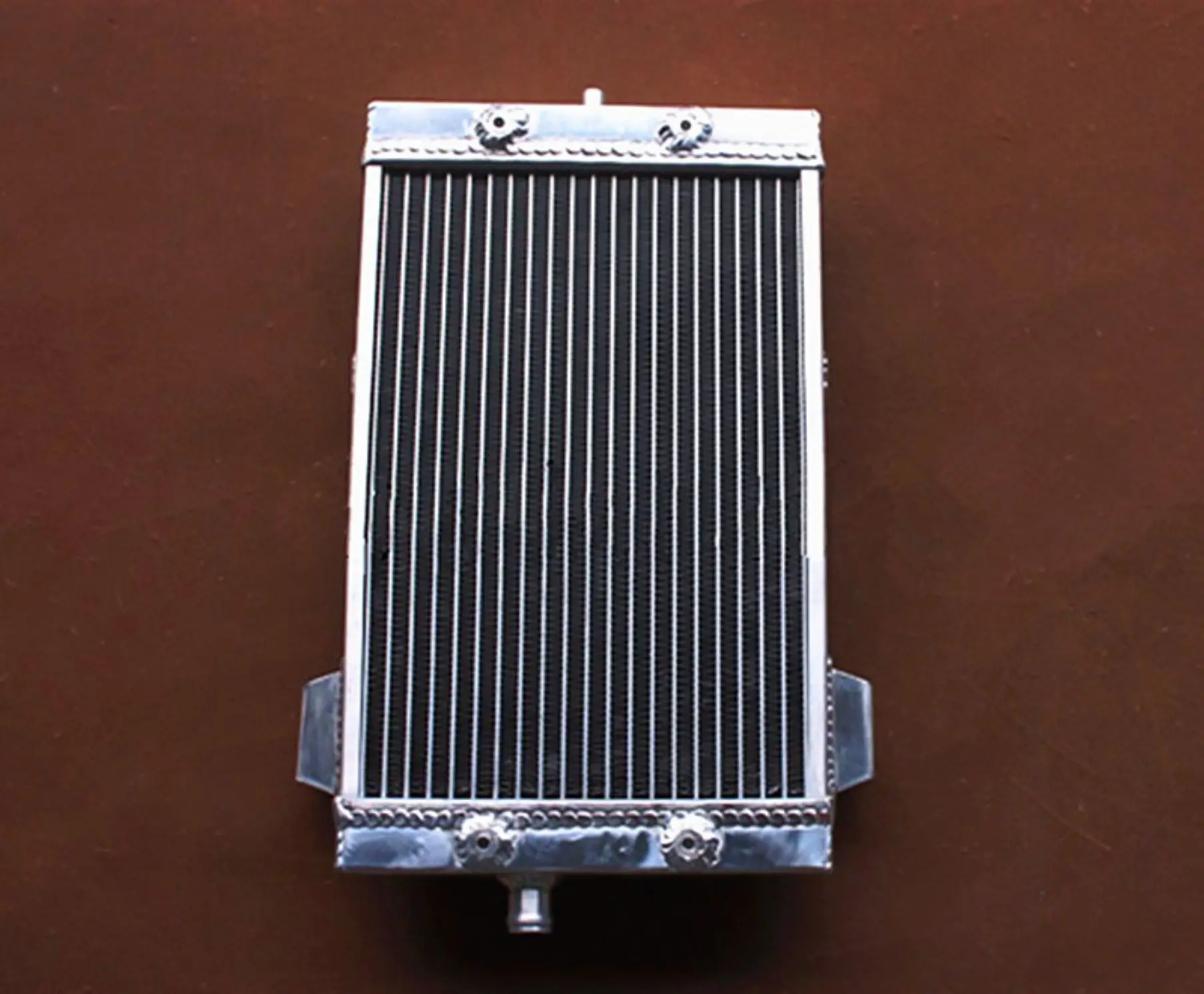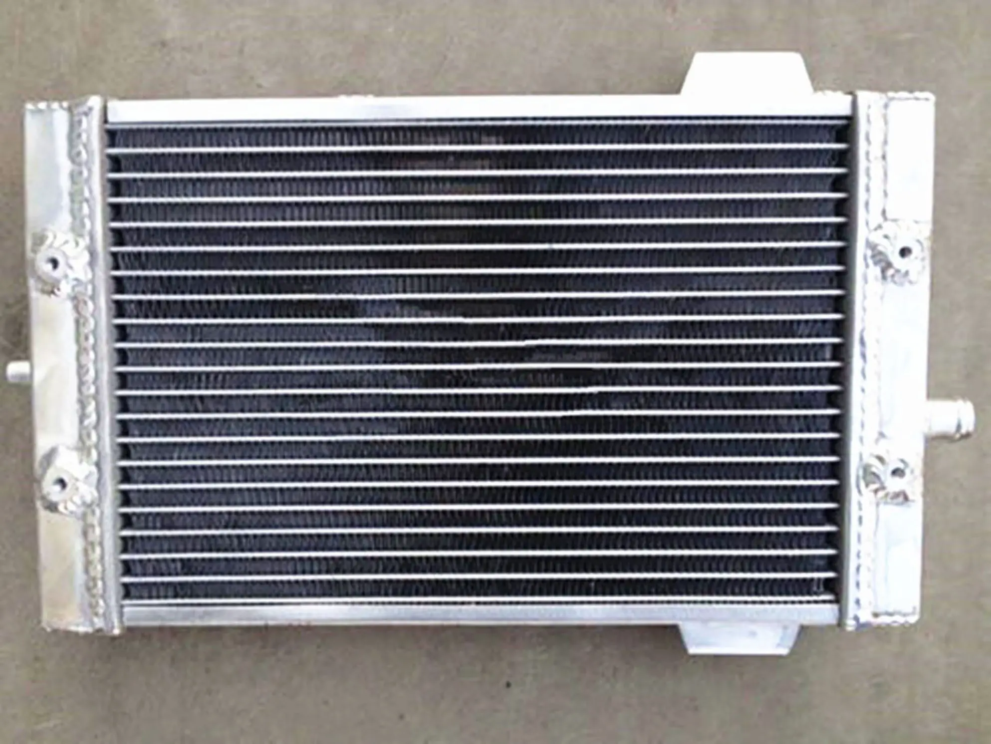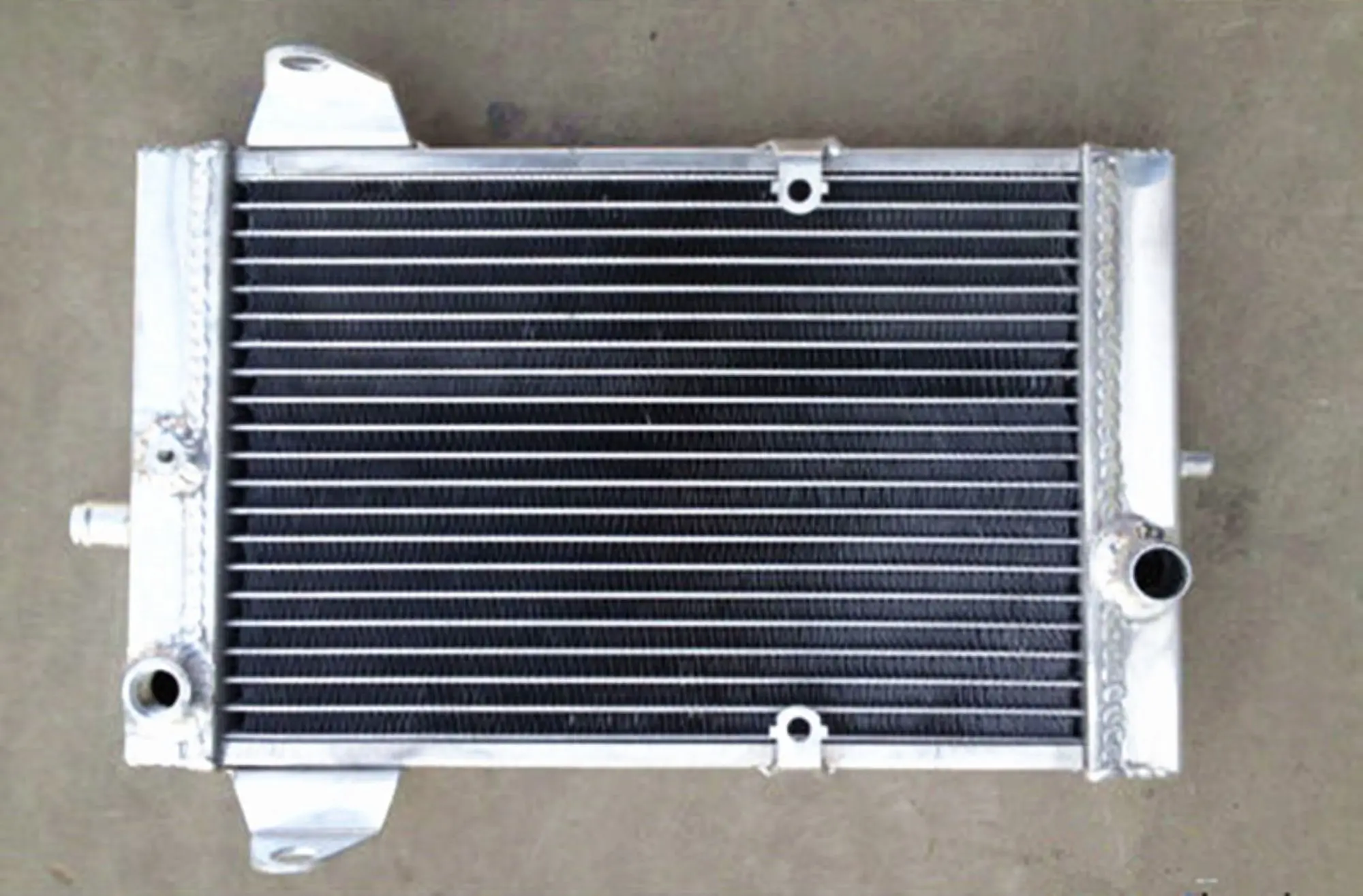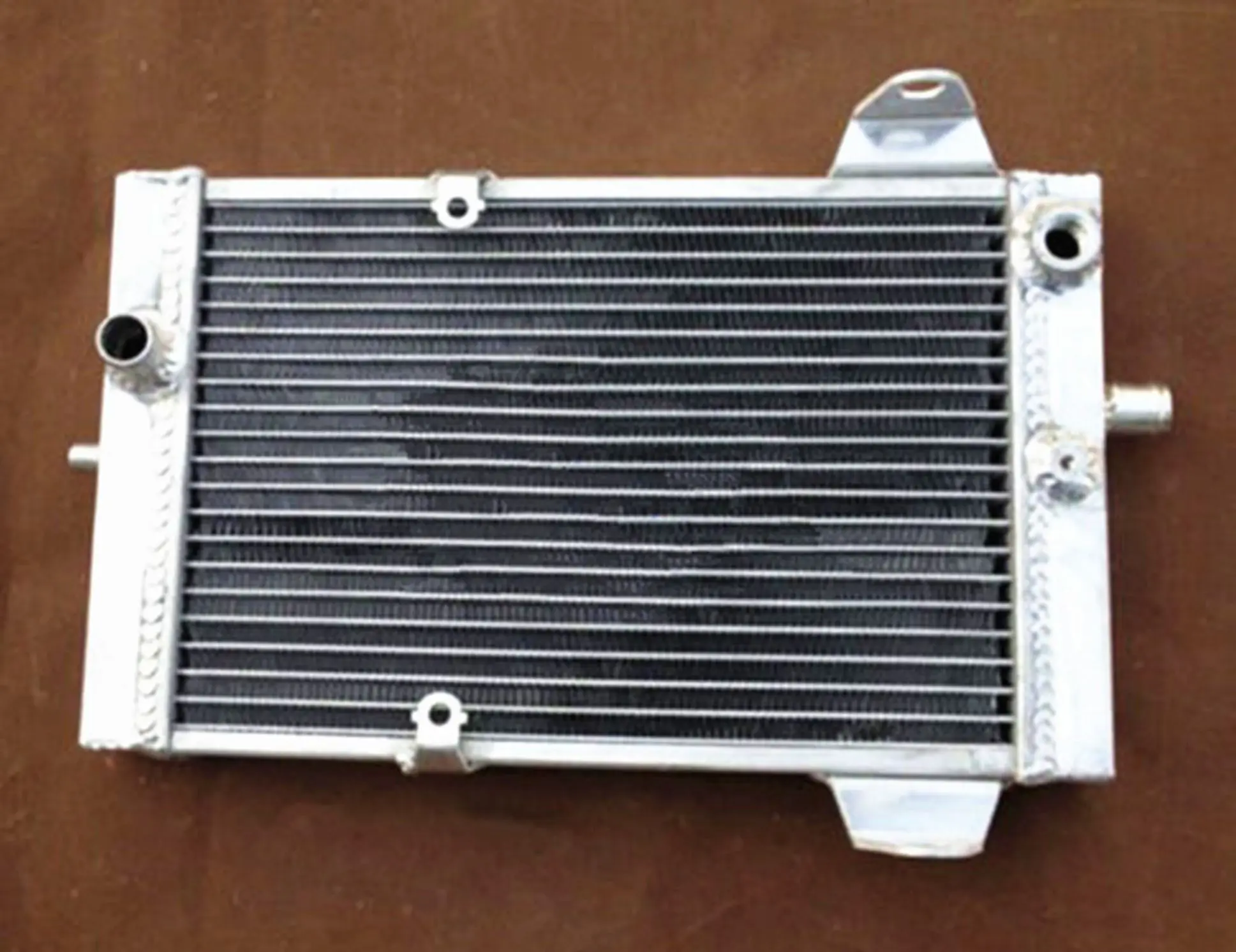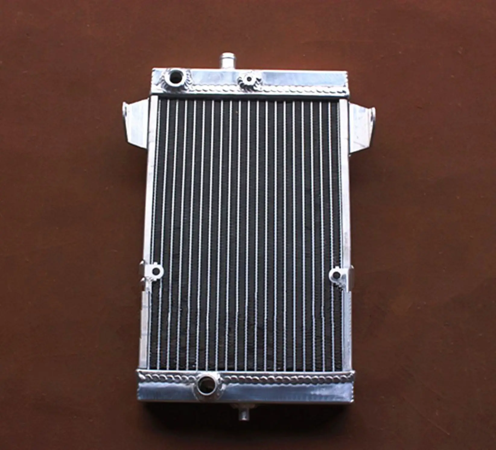 Upgrade your Kawasaki KFX700 with this heavy-duty aluminum radiator, featuring a 300×218×32mm core and overall size of 409×272×68mm, constructed from aircraft-grade T-6061 aluminum. With 20mm inlet and outlet ports, TIG-welded tanks, and core vacuum-brazed without epoxy, it offers approximately 40% higher cooling capacity than standard radiators. Designed for durability and high performance, it fits models from 2003 to 2009 with easy installation and minimal modifications required. Built to exceed OEM standards, this brand-new radiator ensures reliable, enhanced cooling for intense riding conditions, backed by a 1-year warranty against manufacturing defects.