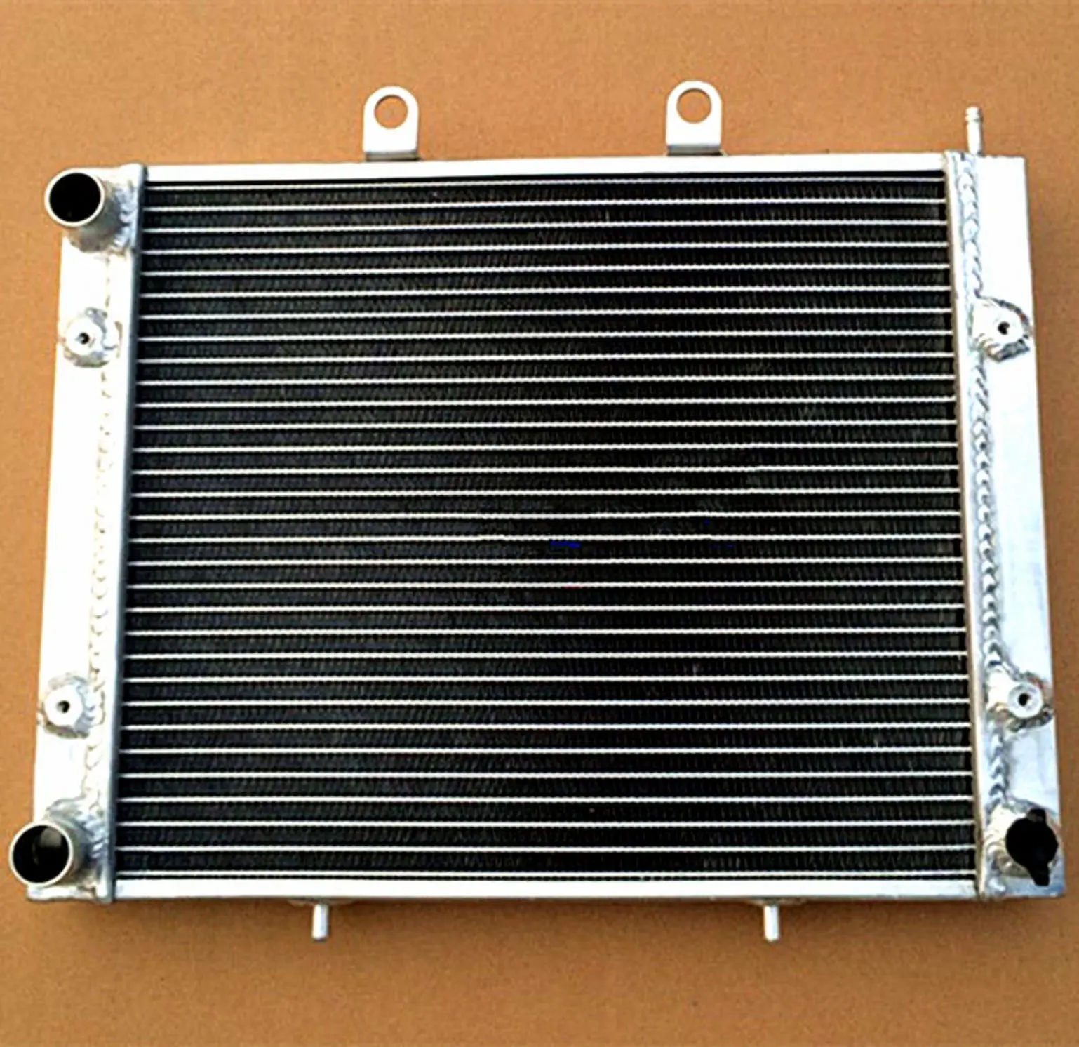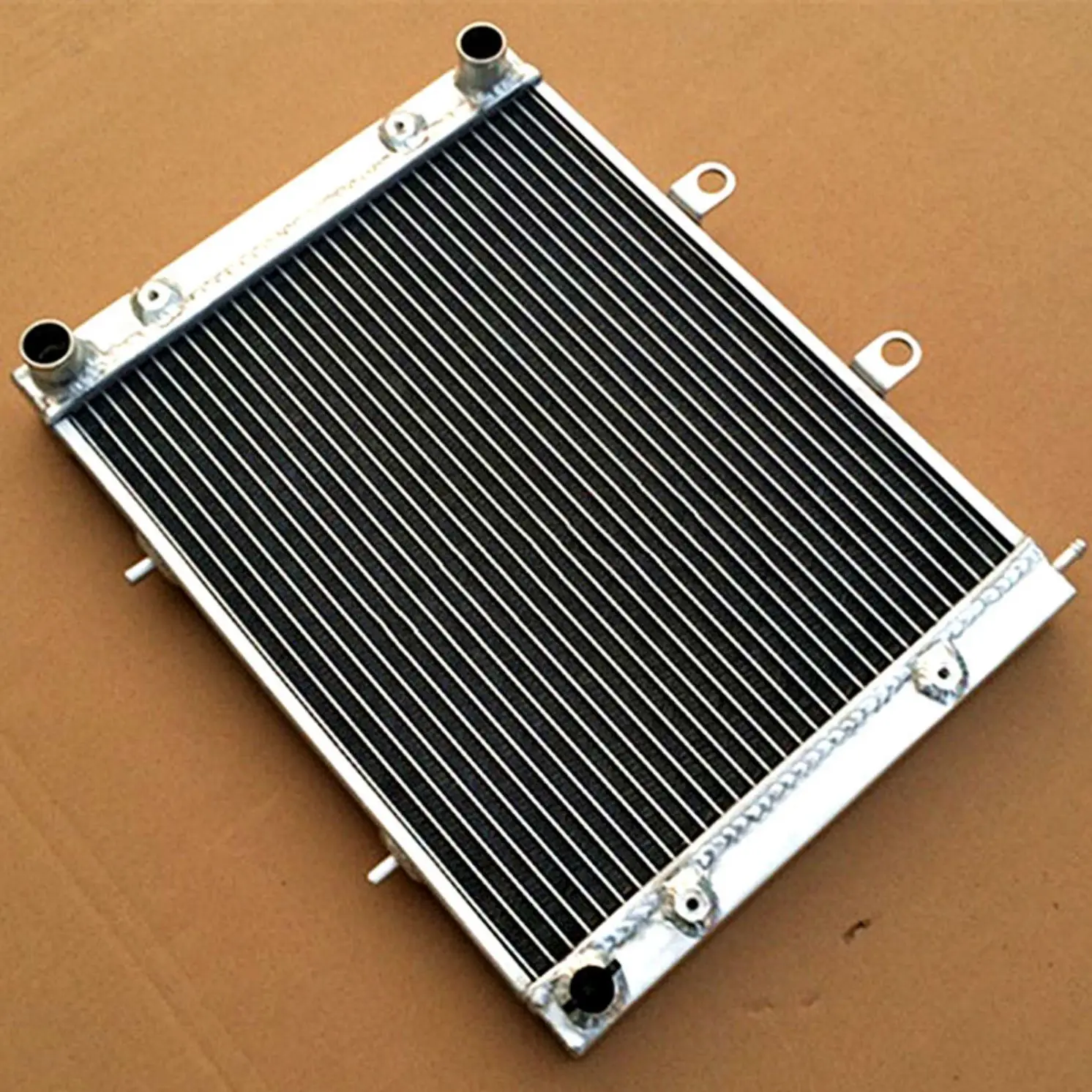 Upgrade your Polaris Sportsman from 2004 to 2014 with this heavy-duty aluminum radiator, featuring a core size of 358×318×26mm and overall dimensions of 604×337×55mm. Made entirely of T-6061 aluminum, including core and tanks, it’s TIG-welded and vacuum brazed for exceptional durability and strength, ensuring a seamless and robust construction without epoxy. Designed to provide approximately 40% greater cooling capacity than standard radiators, it exceeds OEM standards, making it perfect for high-performance use. The radiator has an inlet diameter of 25mm and an outlet of 8mm, weighing more than standard models for added quality, and comes with a 1-year warranty against manufacturing defects.