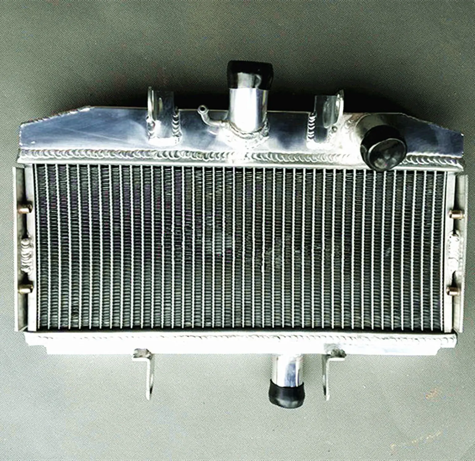 Imagine riding with confidence, knowing your Suzuki GT750 LeMans is equipped with a radiator built for demanding conditions. Crafted from resilient T-6061 aluminum, this radiator features a sleek rectangular core measuring 160×418×40mm and an overall size of 430×330×210mm. Its polished silver finish lends a professional, durable look, while the vertical black fins add an industrial touch. The top-mounted, slightly bent inlet pipe (32mm) and the smaller, unpainted outlet (6mm) seamlessly integrate with your bike’s cooling system. Designed for heavy-duty performance, it increases cooling capacity by around 40%—ideal for enthusiasts pushing their ride during intense touring or race situations. This radiator’s sturdy construction guarantees reliability, with TIG-welded tanks and vacuum brazed core for maximum durability.