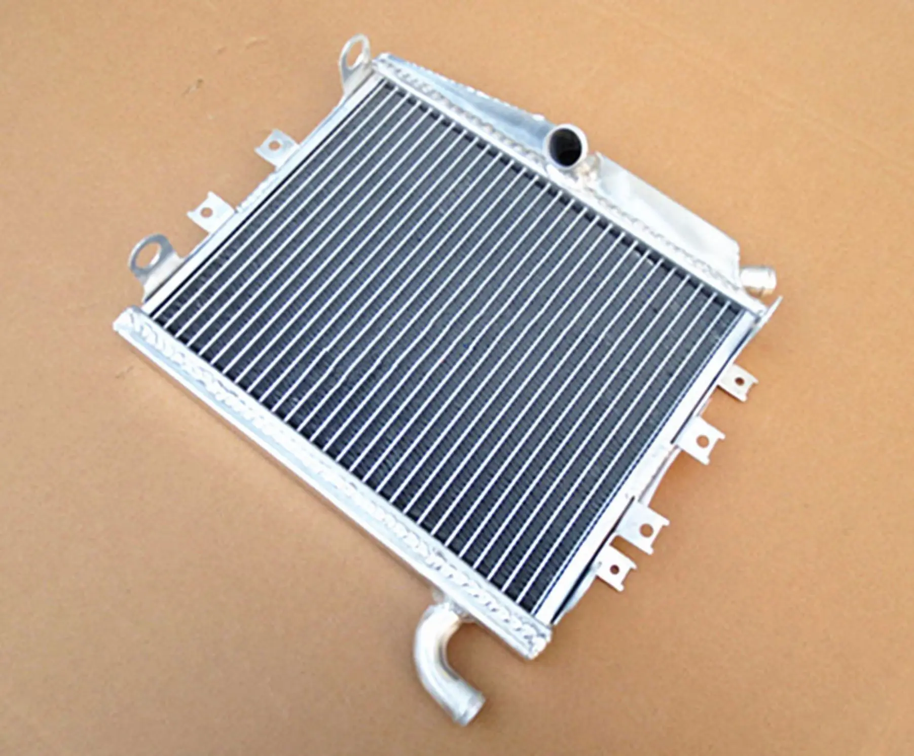 Enhance your Yamaha RZV500R, RD500LC, or RZ500 (1984-1986) with this heavy-duty aluminum radiator cooler featuring a 230x308x22mm core and 342x360x75mm overall size. Crafted from T-6061 aluminum with vacuum brazed welding and TIG tanks, it provides approximately 40% more cooling capacity than standard radiators, surpassing OEM standards. Designed for durability and efficient heat dissipation, it offers easy installation with minimal modifications. This new, high-performance radiator ensures reliable and long-lasting performance, backed by a 1-year warranty against manufacturing defects, making it the ideal upgrade for high-performance riding.