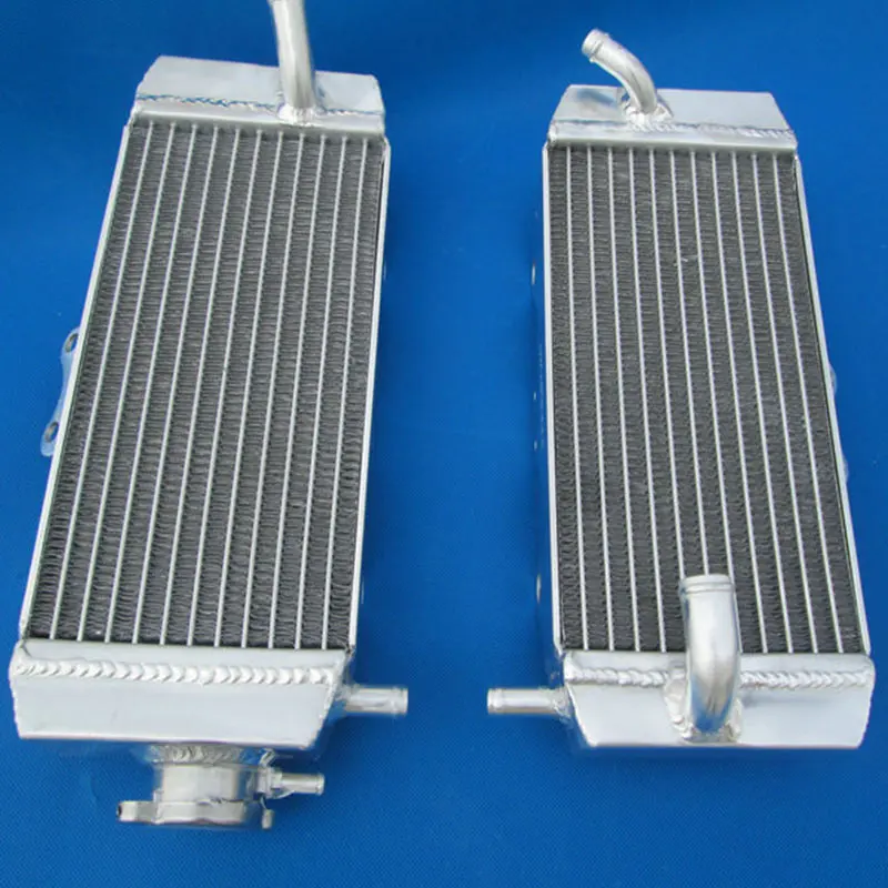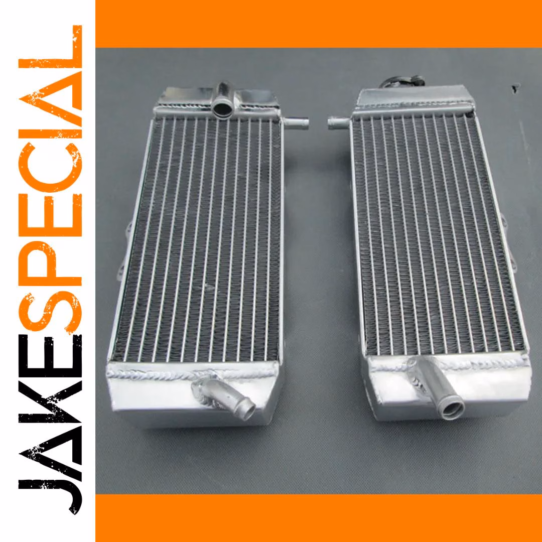 Upgrade your Yamaha motorcycle with this pair of heavy-duty aluminum radiators, compatible with 2007-2014 WR250F and 2006 YZ250F models. Crafted entirely from T-6061 aluminum, including the core and tanks, with vacuum brazed core and TIG-welded tanks for durability and a seamless, epoxy-free construction. Designed to boost cooling capacity by approximately 40% over standard radiators, these radiators feature a sleek rectangular shape with polished, reflective surfaces and streamlined contours. Easy to install with minimal modifications, they offer reliable performance for demanding riding conditions. Backed by a 1-year warranty against manufacturing defects, ensuring quality and peace of mind.