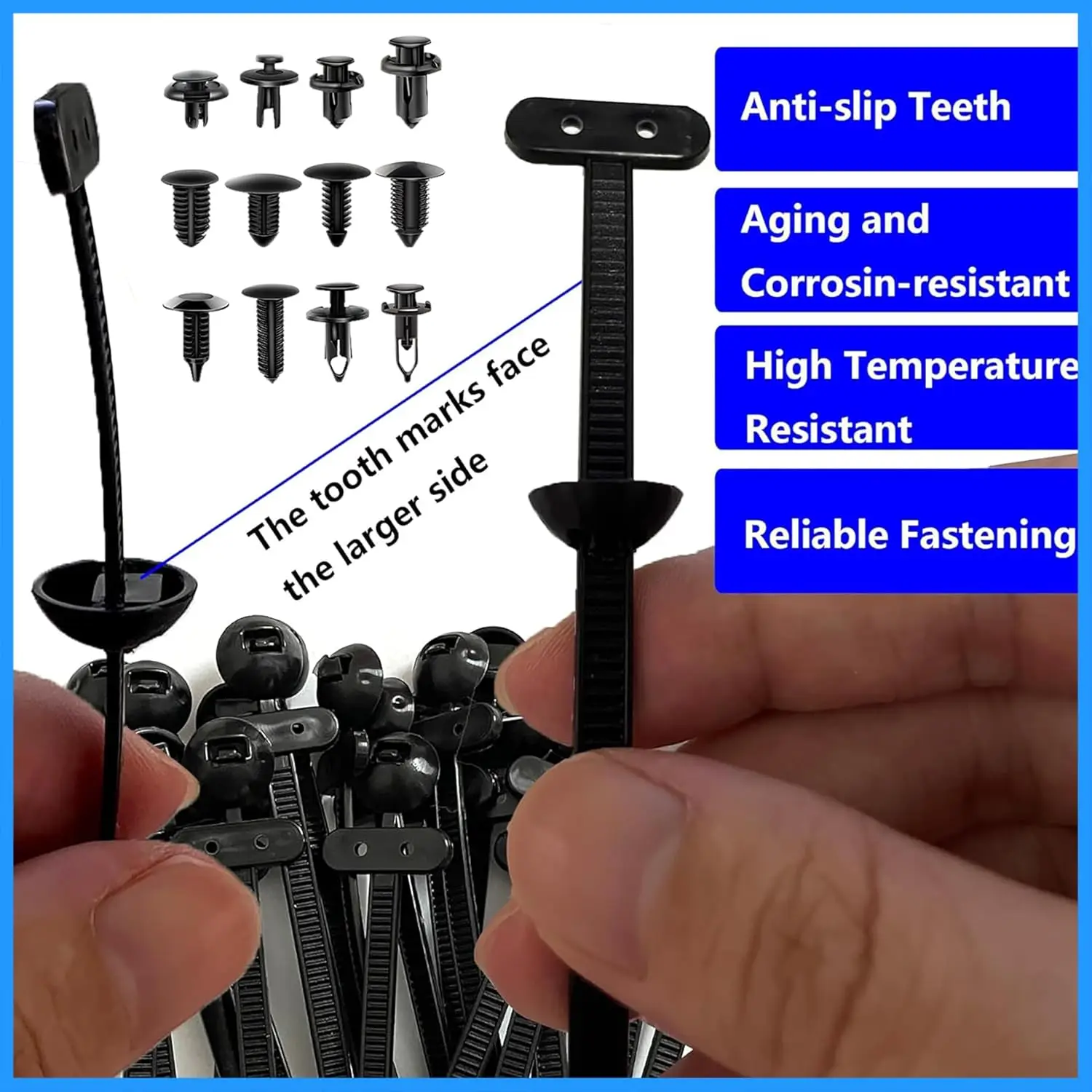 Don’t wait—equip yourself today with this reliable and easy-to-install cable tie buckle set. Perfect for auto repairs, wire bundling, and securing panels, it’s designed to fit your needs and provide peace of mind. Imagine quickly fixing a loose bumper or organizing tangled wires effortlessly, saving time and effort. Whether for professional repair shops or personal projects, this set offers unmatched strength, durability, and versatility. Get yours now and experience the convenience of secure, chemical-free fastening that lasts through the toughest conditions. Your car and toolbox will thank you!