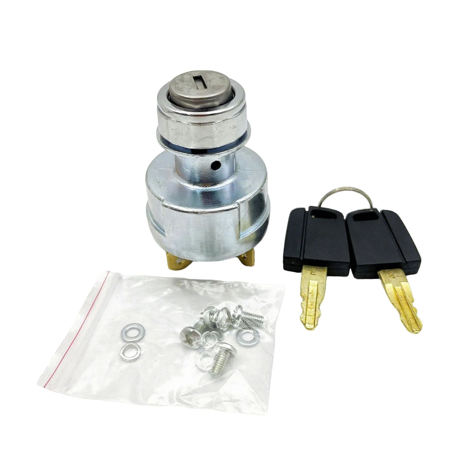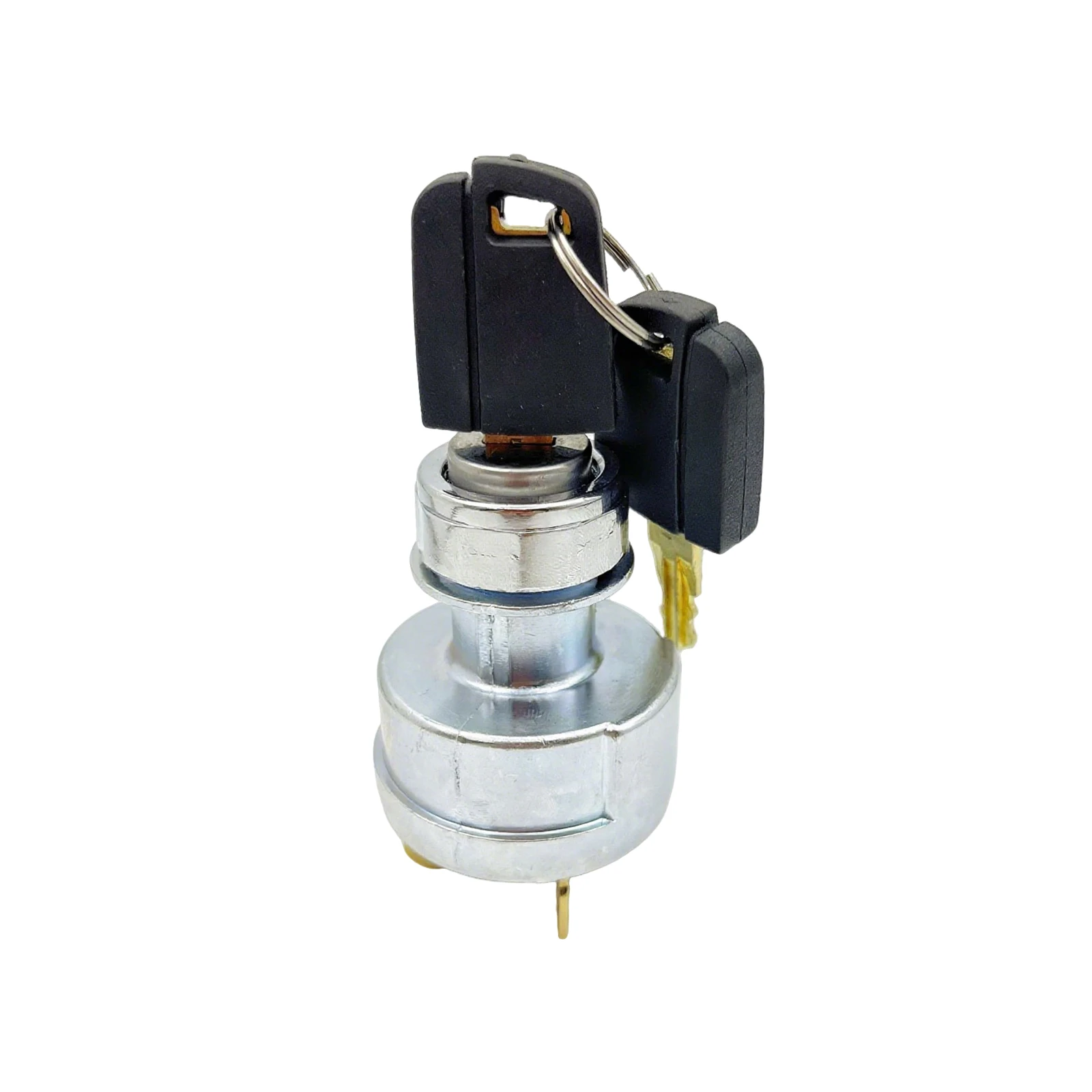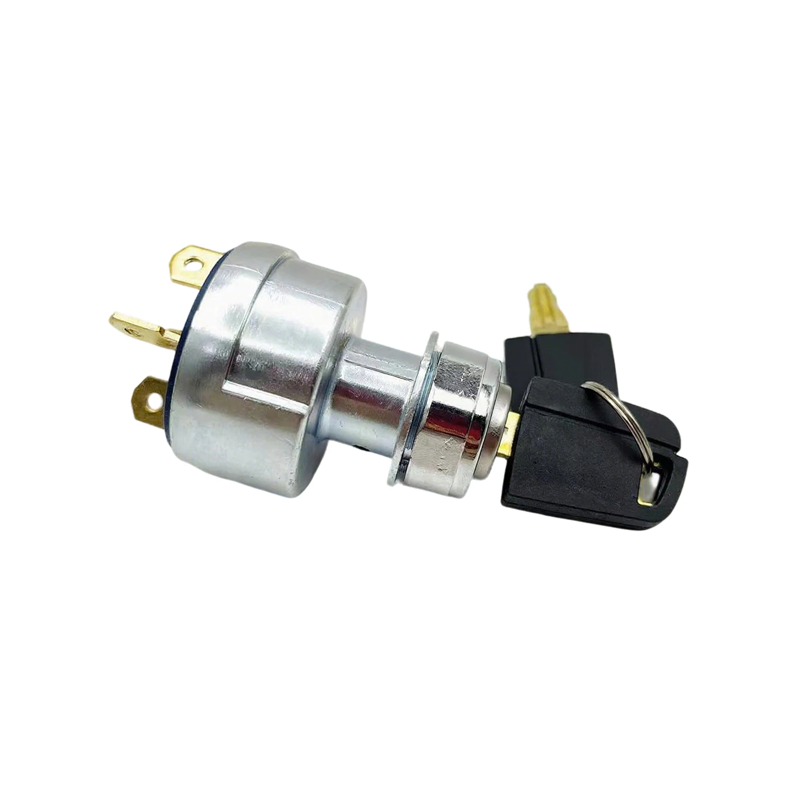 Step into the world of reliable machinery parts with this high-quality ignition switch designed specifically for heavy-duty equipment like CAT excavators. Crafted from polished, shiny silver-colored metal, this cylindrical switch embodies strength and durability with its smooth surface and compact industrial design. Its robust construction ensures it withstands demanding operating conditions, giving you confidence in its longevity. The included black plastic keys with gold-colored blades provide an ergonomic grip, making ignition and security simple and quick. These components perfectly blend functionality with a sleek metallic finish, making your equipment both practical and visually appealing. Whether for replacement or upgrade, this ignition switch offers seamless compatibility and peace of mind.