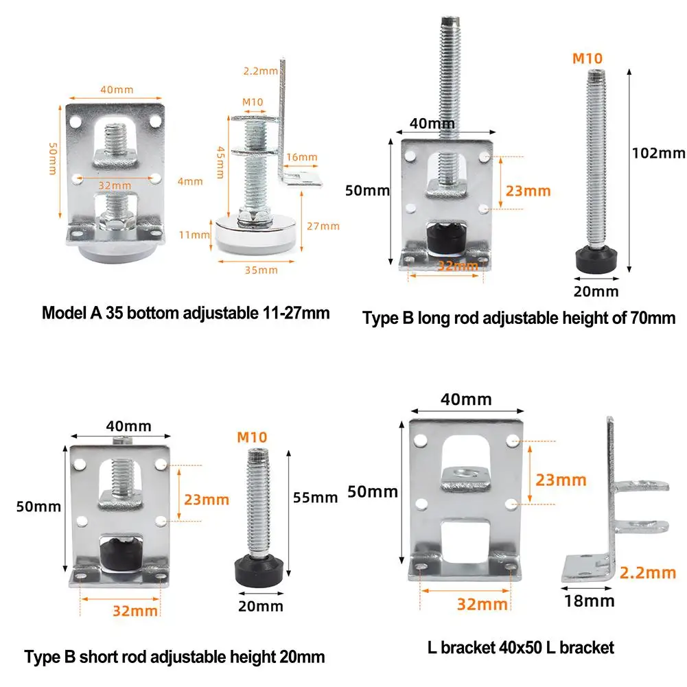 Achieve perfect stability with this heavy-duty furniture leveler, crafted from durable cold-rolled steel with a rust-proof electroplating finish. Featuring an adjustable height via a hex screw, it easily compensates for uneven floors, ensuring your cabinets, tables, workbenches, shelving units, and bookcases remain level and secure. The sleek design complements industrial and modern aesthetics, while the versatile color options allow seamless integration into various furniture styles. Each package includes one robust leveling foot, designed to withstand heavy loads and protect your floors from moisture and damage. Trust this reliable, adjustable leveler for maximum stability and long-lasting performance in any heavy furniture setup.