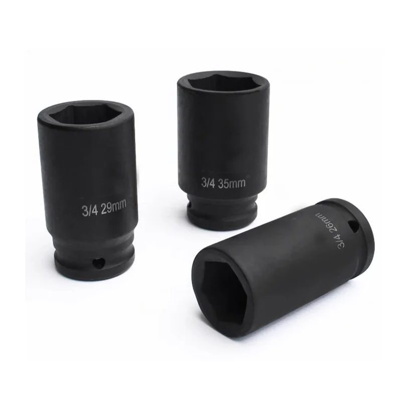 Experience unmatched durability and precision with this impact hex socket set. Crafted from high-quality CR-MO steel, these sockets are designed for demanding impact applications. With a sleek black finish and a sturdy 3/4-inch drive, each piece offers excellent resistance to wear and tear. The set includes 28 sizes from 17mm to 55mm, ensuring versatility for various heavy-duty projects. The 80mm length provides enhanced reach and torque transfer, making your tasks easier and faster. The beveled 6-point openings guarantee secure engagement with fasteners, reducing slips during high-torque operations. Whether for automotive repairs, industrial maintenance, or mechanical assembly, these sockets are trusted tools that deliver strength, reliability, and precision. Visualize yourself completing challenging tasks efficiently with tools designed for professionals like you.