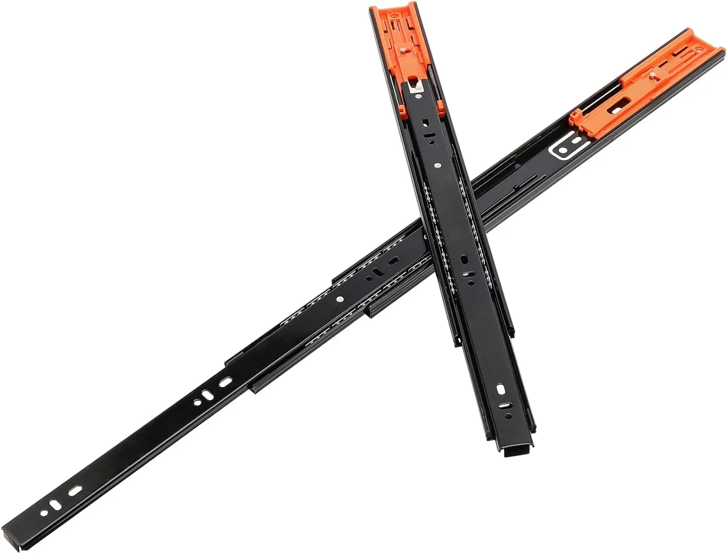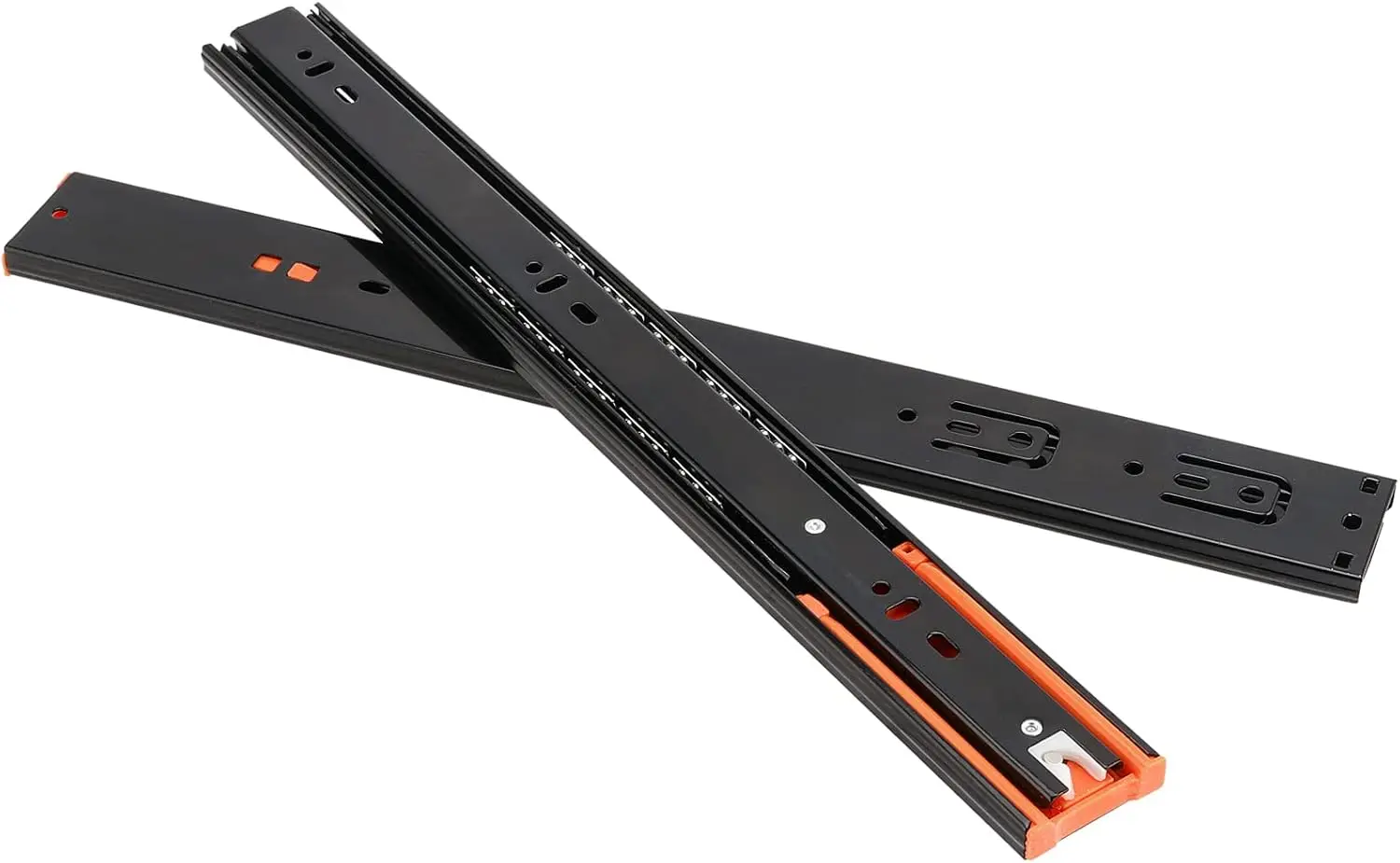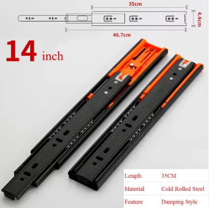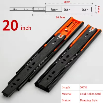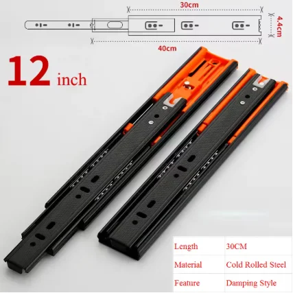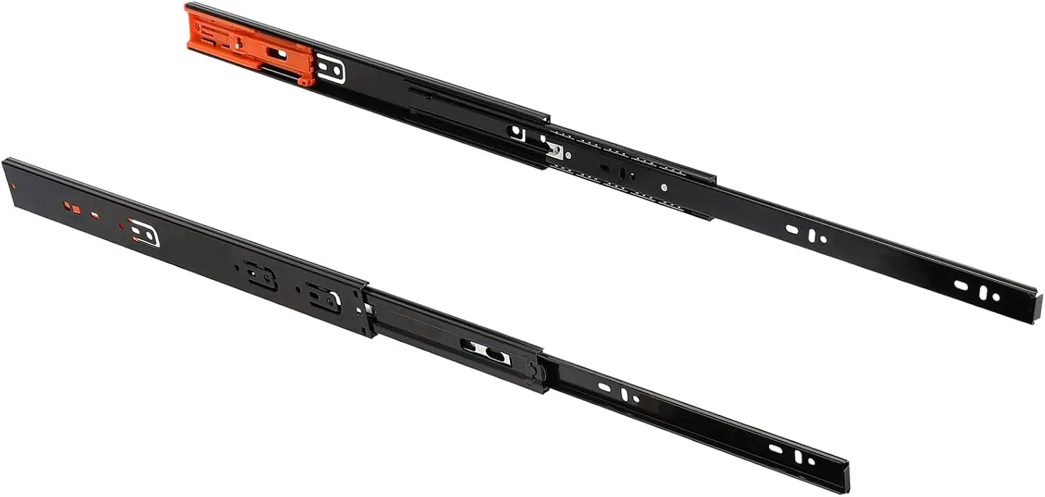 Imagine upgrading your furniture with these high-quality metal buffer drawer slides, designed to offer smooth, quiet operation while supporting heavy loads up to 45kg. Crafted from durable cold rolled steel with a sleek matte black finish, these slides feature vibrant orange locking clips for easy installation and secure positioning. Their three-section design allows effortless extension and retraction, perfect for maximizing space efficiency. Equipped with double springs and damping buffers, they enable gentle, silent closing to prevent slamming or damage. Suitable for damp environments like kitchens, bathrooms, or balconies, these slides ensure reliable performance with stainless steel balls and a lockable fixed slot to prevent accidental openings. Perfect for enhancing your furniture’s functionality and durability.