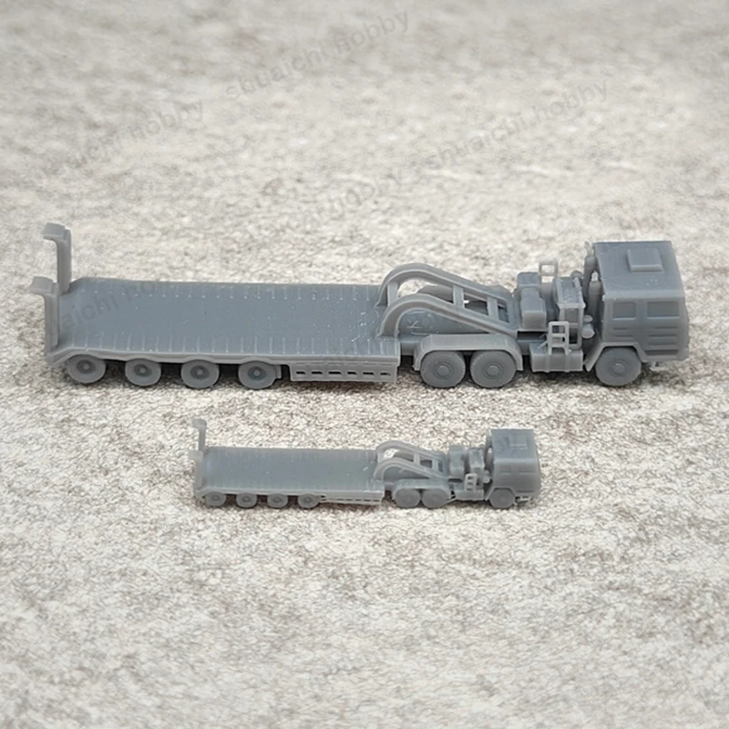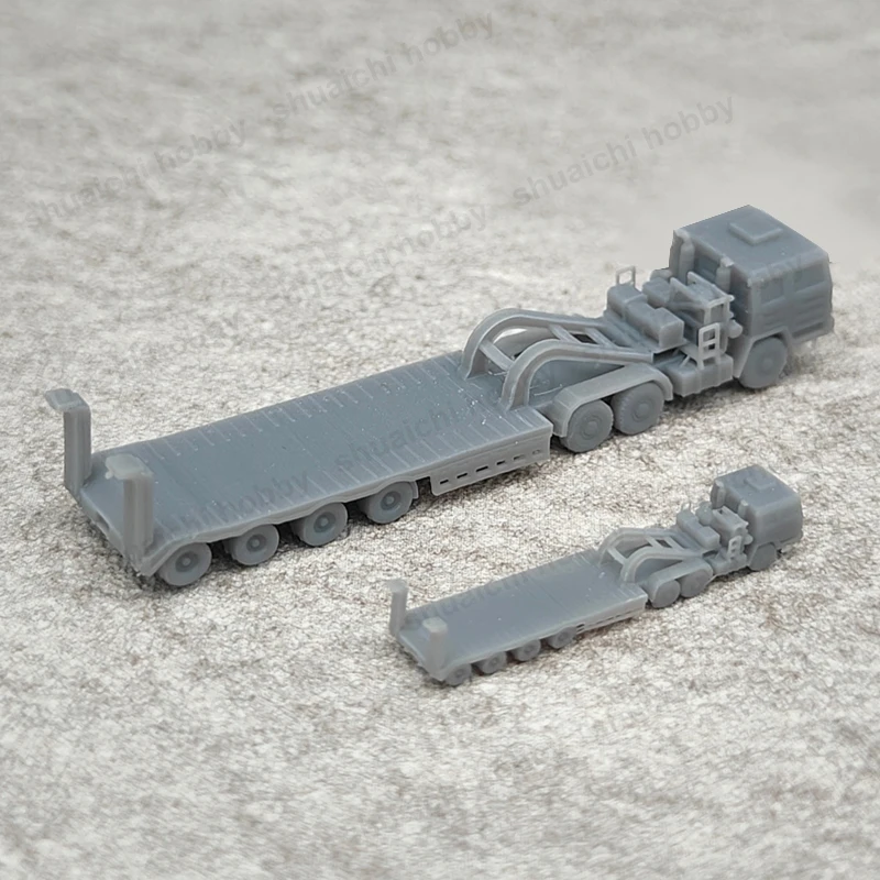 Step into the world of detailed modeling with these high-quality resin-built trailers, perfect for display or diorama creation. Designed with precision through advanced 3D printing techniques, these models capture the rugged essence of heavy-duty tank transport vehicles. Available in two scales, 1/350 (4.9cm long) and 1/700 (2.46cm long), they showcase sharp, angular lines with textured surfaces mimicking metal decking and structural elements. Their smooth finish highlights intricate features such as windows, grilles, bumpers, and wheel arches, offering a realistic industrial aesthetic. Compact yet highly detailed, these trailers promise to be a rewarding addition to your collection, bringing authenticity and craftsmanship to your display space.