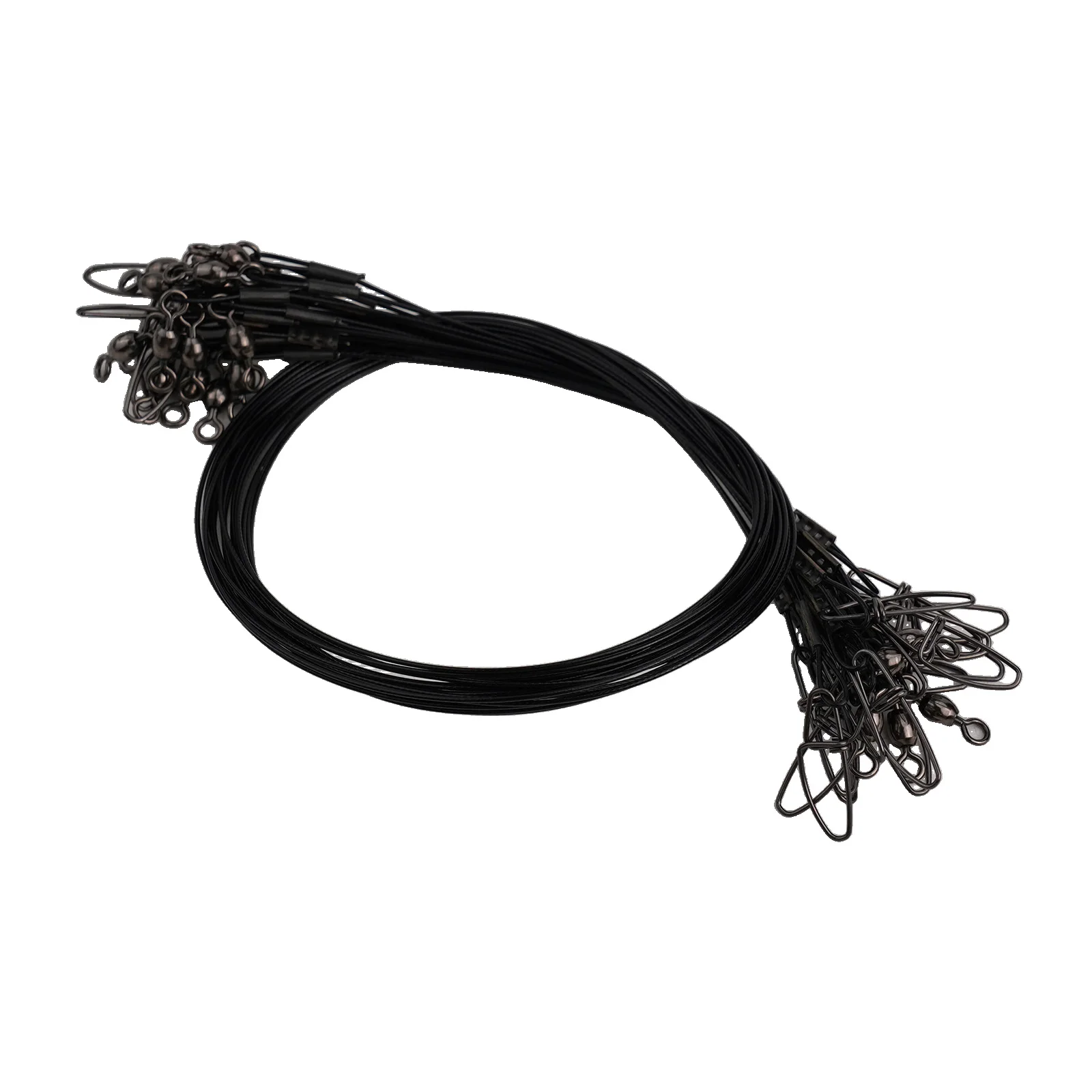 - Technical Specifications: Length 19.7″, diameter 1 mm, total weight 90 grams, tested to 125 lbs, made of high-carbon steel with nylon coating, stainless steel swivels and snaps, available in black, green, blue, red, and mixed colors.